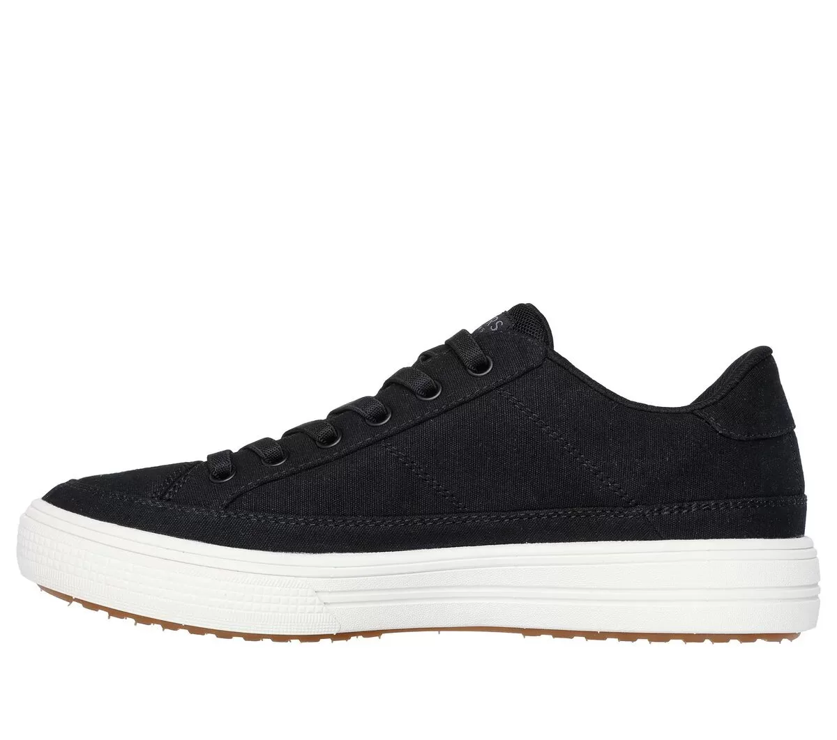 Sal con un estilo informal y una comodidad acolchada con Skechers Street™ Arch Fit® Arcade – Meet Ya There. Este diseño vegano fácil de usar ha recibido el Sello de Aceptación de la APMA y cuenta con una parte superior de lona de algodón con cordones elásticos, plantilla Arch Fit® extraíble y una entresuela acolchada ligera.