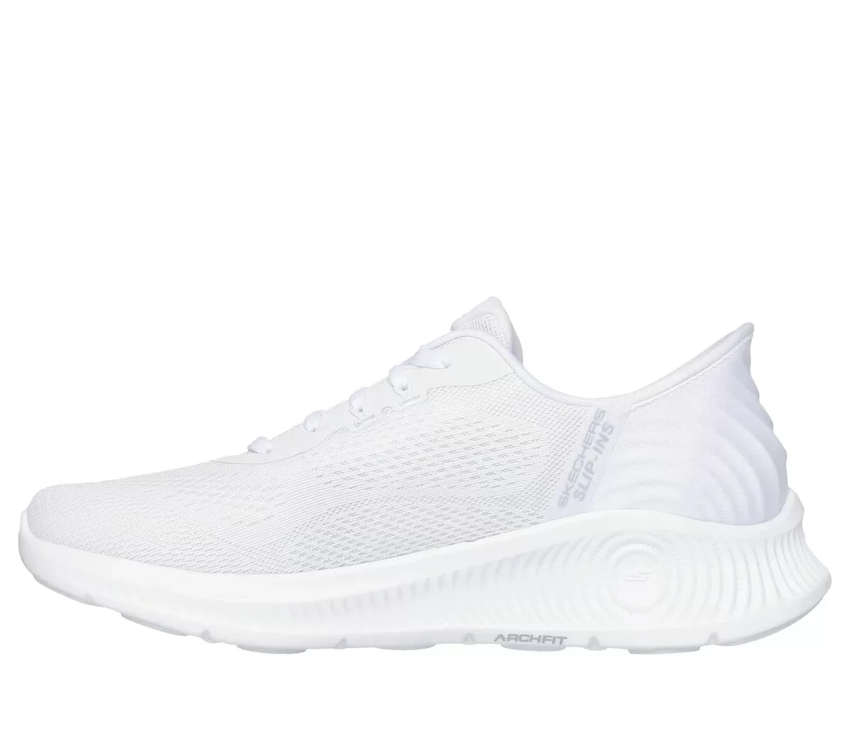 • Sistema de plantilla patentado Skechers Arch Fit® con soporte de arco certificado por podólogos, desarrollado con 20 años de datos y 120,000 escaneos de pies sin peso.