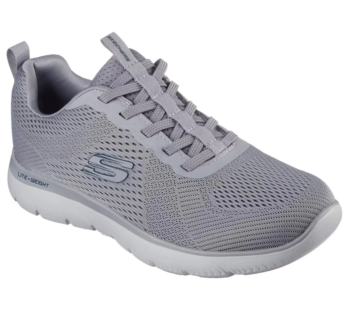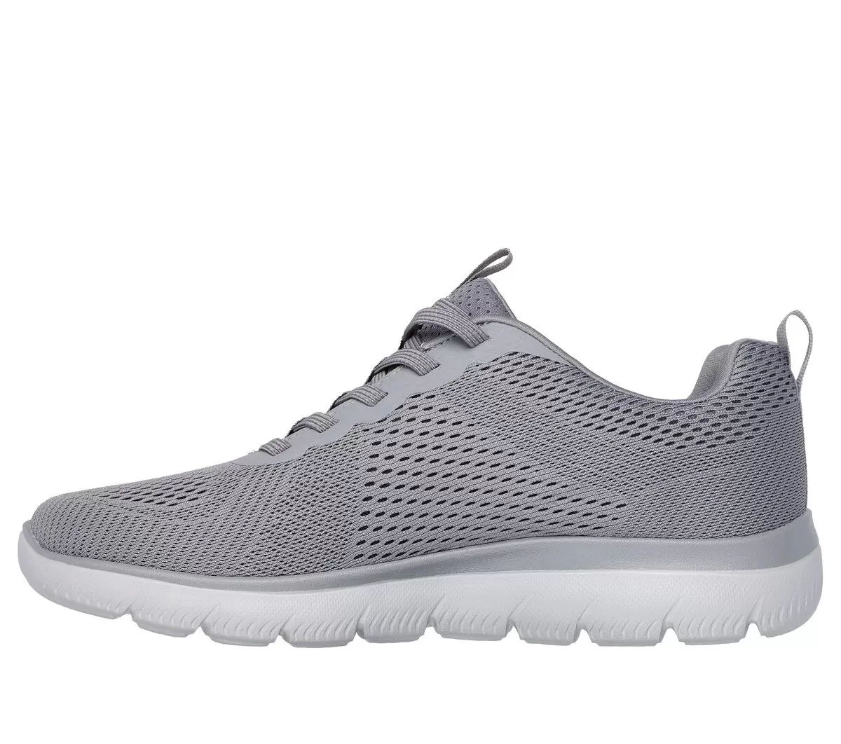 Pies más cómodos están a un paso con las Skechers Summits – Eckler. Este diseño vegano y deportivo cuenta con una parte superior de malla con cordones elásticos y una plantilla acolchada y cómoda Skechers Memory Foam™.