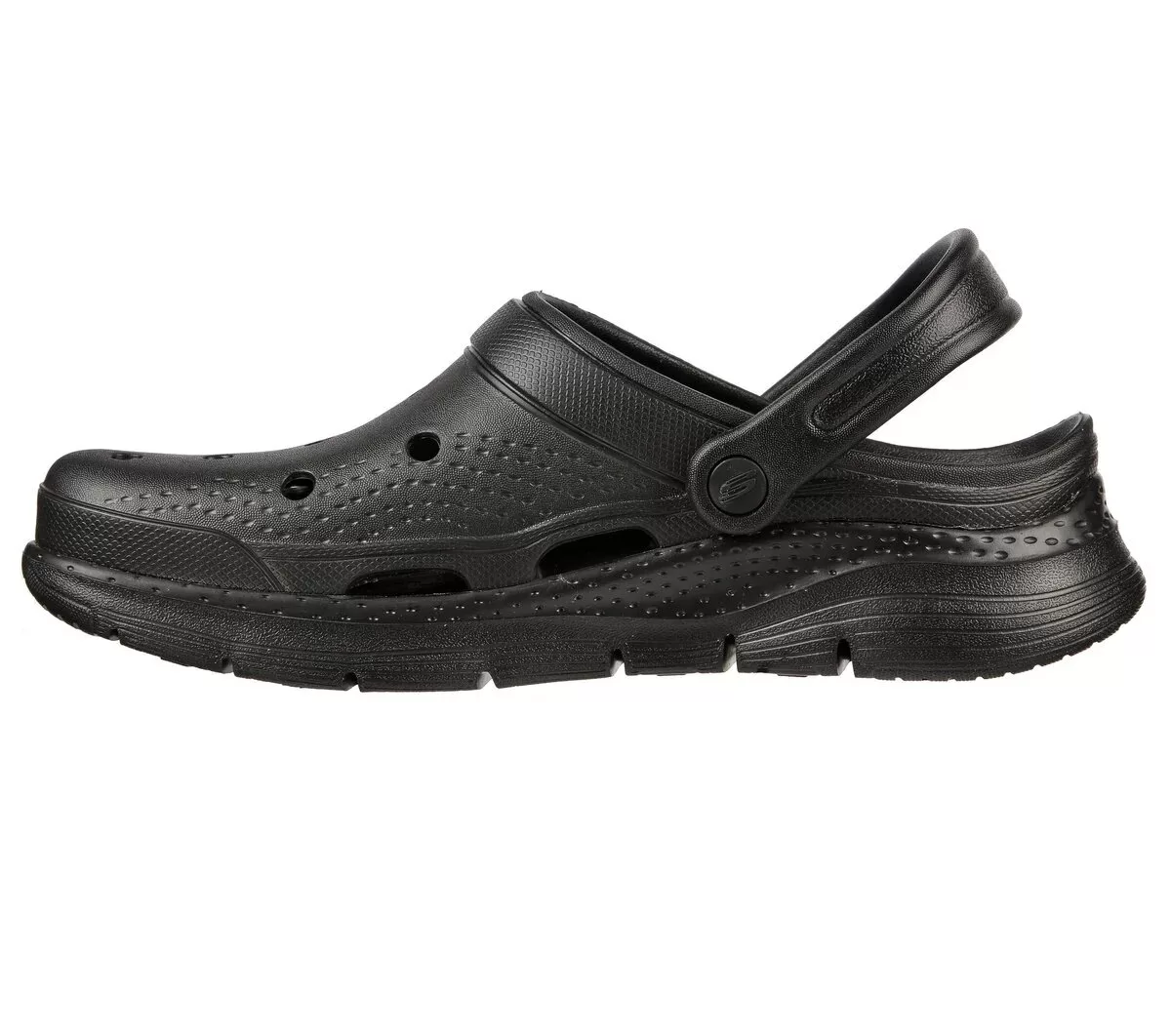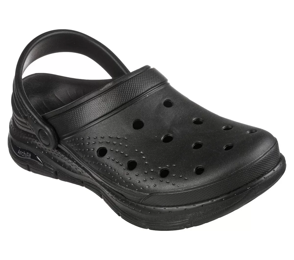 Camine con comodidad y soporte durante todo el día usando Skechers Foamies: Arch Fit® – Valiant. Este zueco esculpido y perforado cuenta con una plantilla contorneada Arch Fit® y una suela exterior de doble densidad.