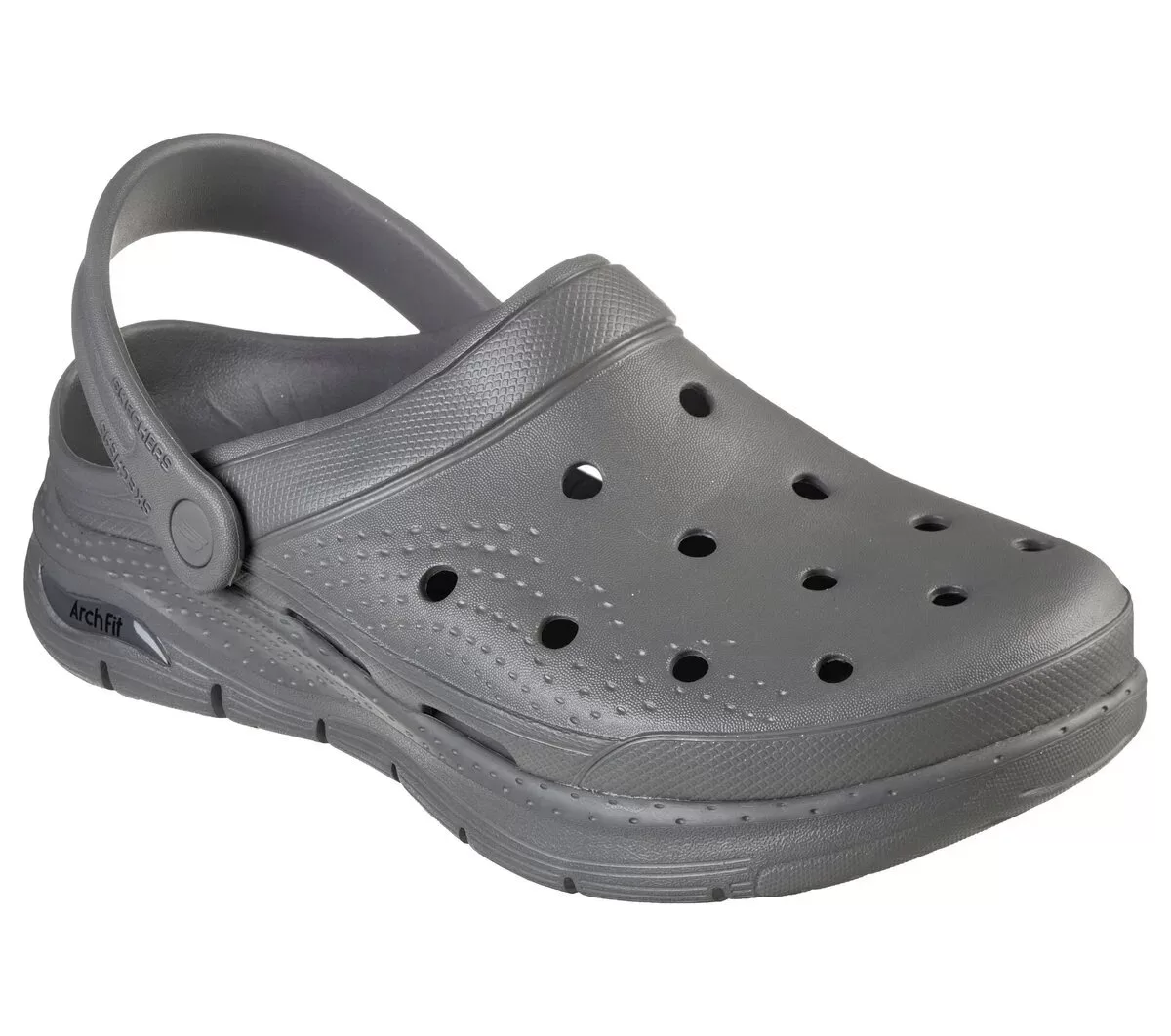 Camine con comodidad y soporte durante todo el día usando Skechers Foamies: Arch Fit® – Valiant. Este zueco esculpido y perforado cuenta con una plantilla contorneada Arch Fit® y una suela exterior de doble densidad.