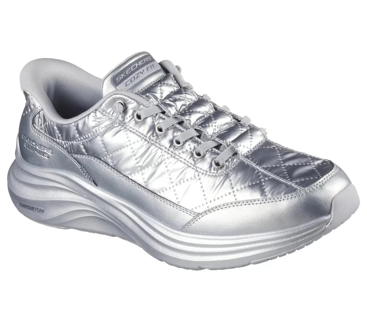 Envuelva sus pies con una comodidad sin esfuerzo con Skechers Hands Free Slip-ins®: Contour Foam™ – Cozy Fit™. Diseñado con nuestra exclusiva Heel Pillow™, este estilo sin cordones presenta un acolchado Cozy Fit™ y una capa superior sintética con un acabado metálico integral, cordones elásticos atados, amortiguación de entresuela Contour Foam™ y nuestra exclusiva plantilla acolchada Skechers Air-Cooled Memory Foam®.