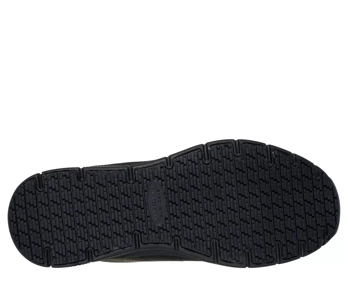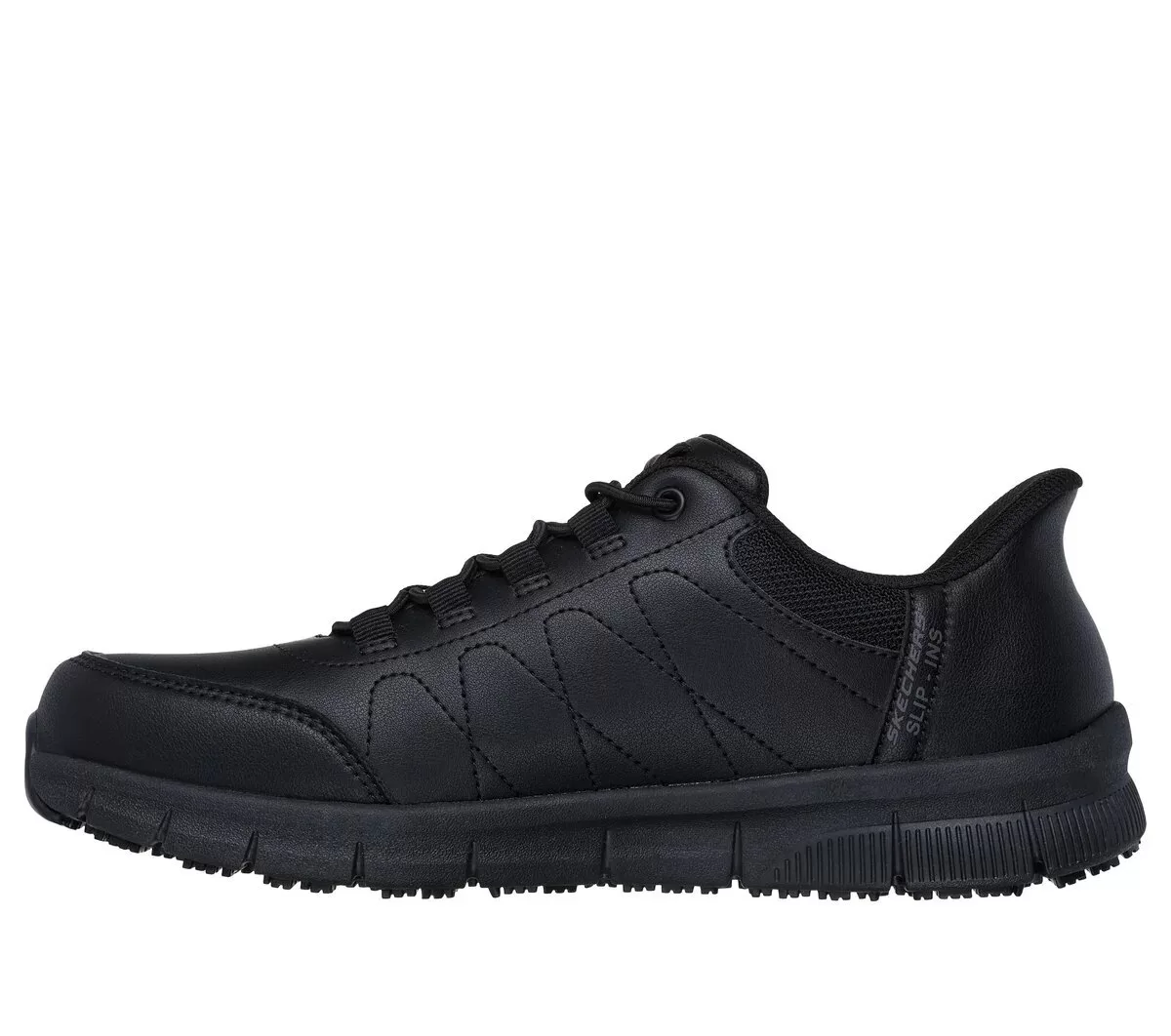 La comodidad segura y la seguridad fácil de usar se combinan en Skechers Hands Free Slip-ins® Work™: Nampa – Knotly. Este diseño antideslizante presenta una parte superior de cuero suave y sintético con detalle de costura, cordones elásticos y una plantilla acolchada Skechers Memory Foam™.