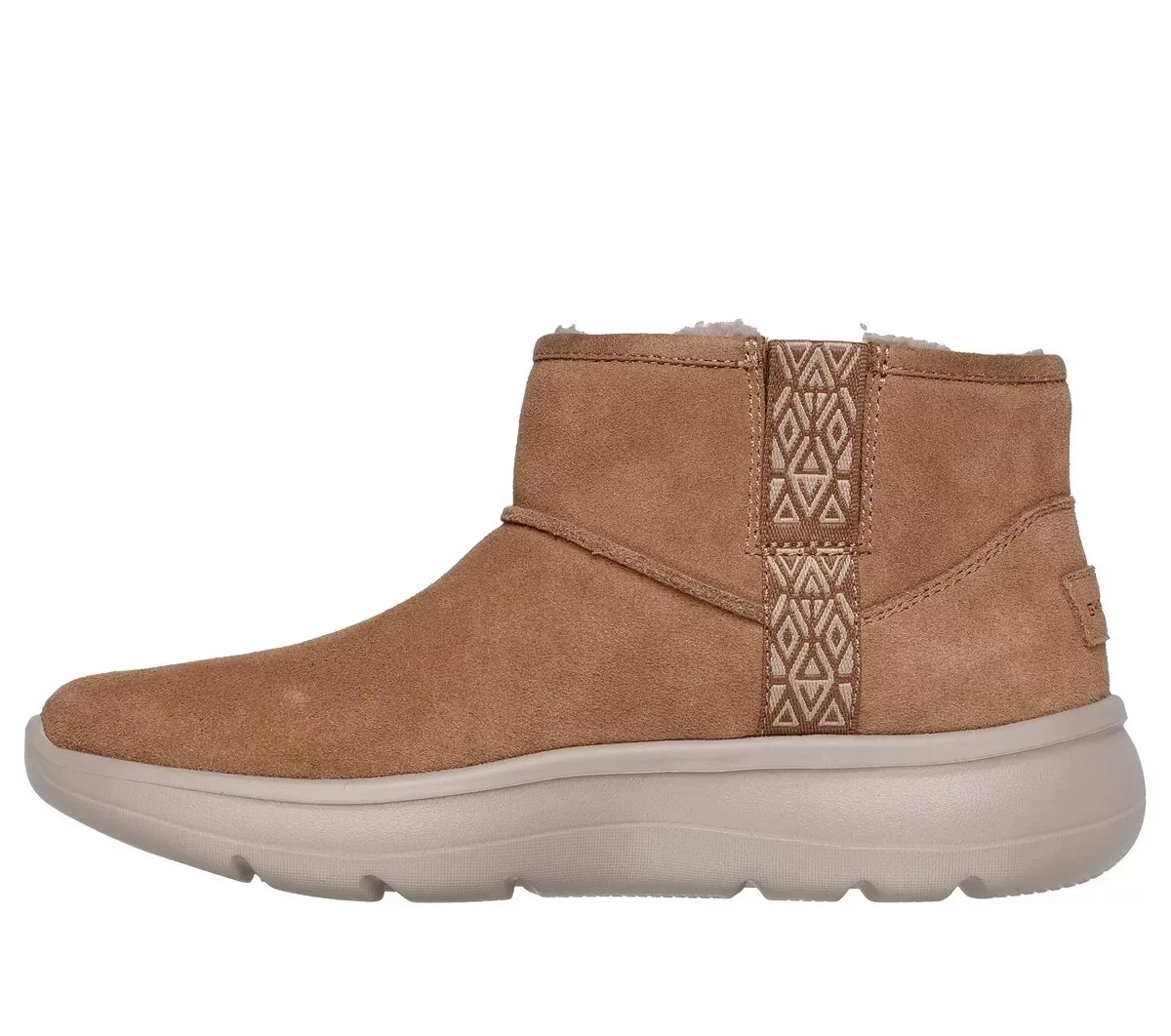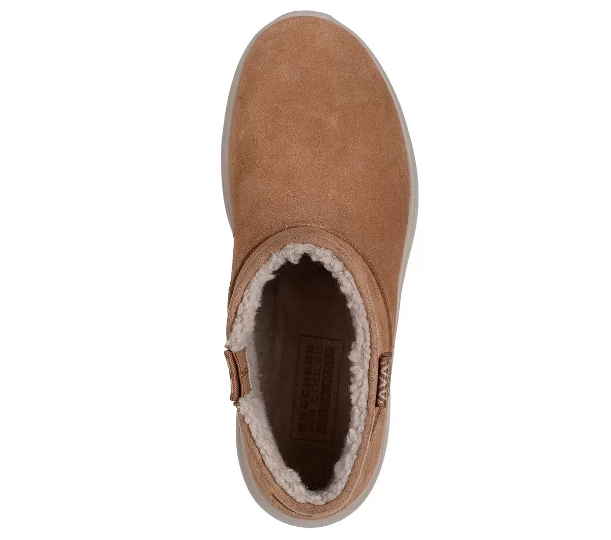 Mantenga sus dedos de los pies cómodos y agradables con un estilo de calidad superior usando Skechers On-the-GO® Encore. Esta bota chugga de caña media presenta una parte superior de gamuza genuina tratada con 3M® Scotchgard® con detalles artesanales, forro de piel sintética, amortiguación ULTRA GO® y una plantilla Skechers Air-Cooled Goga Mat™.