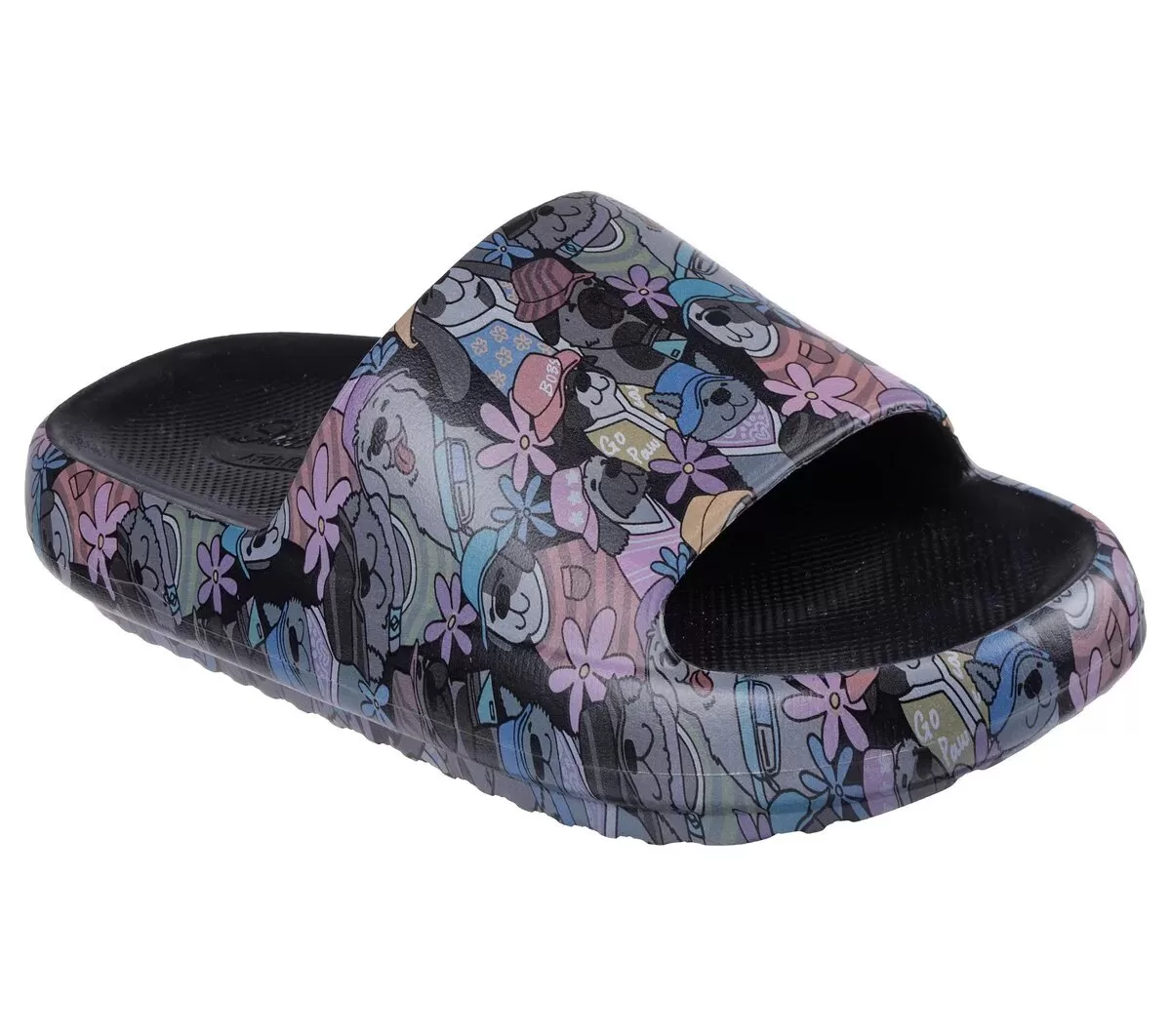 Disfruta de la comodidad, el soporte y el estilo esculpido a la moda con Skechers Foamies®: Arch Fit® Horizon – Pawsitively Cute. Diseñadas con una plantilla contorneada Arch Fit®, estas sandalias tipo chancla han recibido el Sello de Aceptación de la APMA y lucen un bonito estampado integral de BOBS® “Bucket Hat Dogs” sobre una parte superior de EVA Foamies® de una sola banda. Por cada compra de BOBS®, se realiza una donación a animales necesitados.