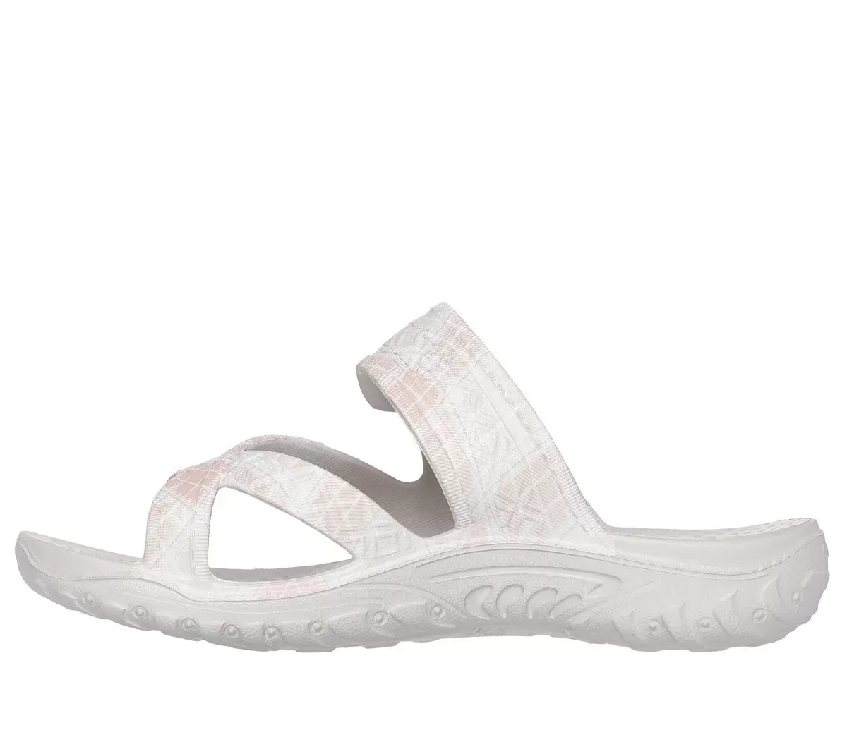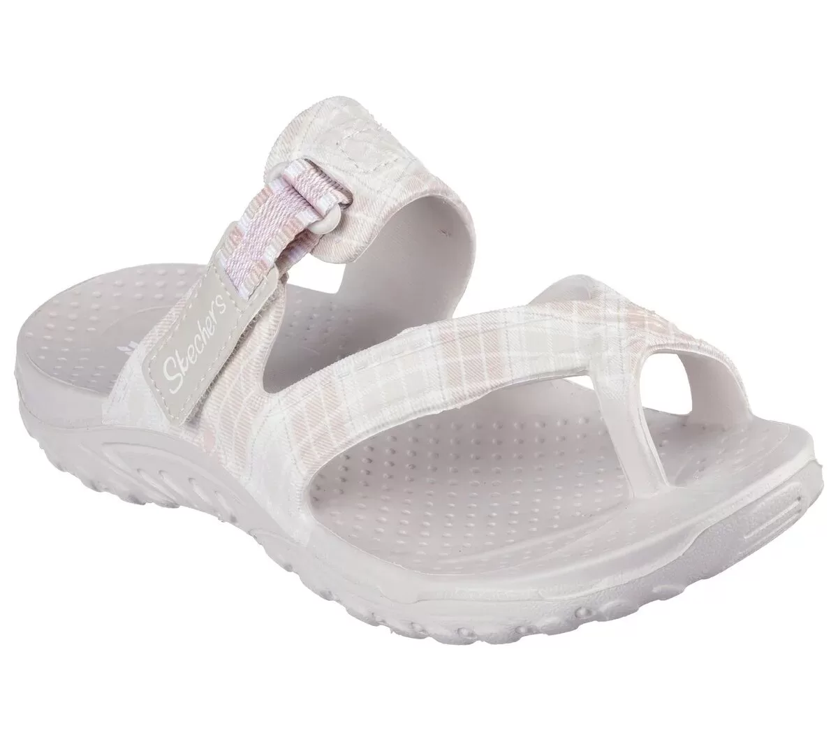 Disfruta de una comodidad fresca y elegante con Skechers Foamies®: Reggae – Tartán. Esta sandalia vegana con tira para los dedos presenta una parte superior de Foamies® con estampado a cuadros, una correa ajustable y una plantilla acolchada y cómoda.