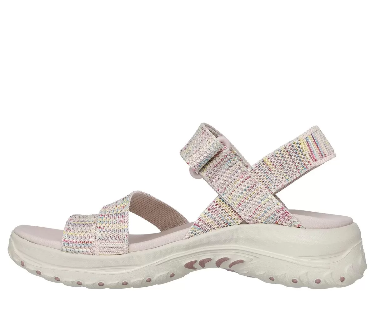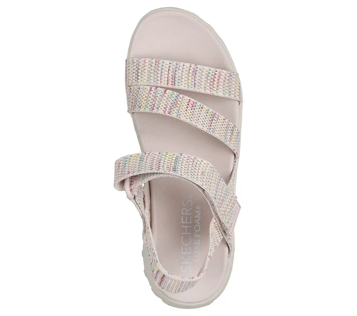 La amplia amortiguación y el estilo fresco forman un par ideal con Skechers Reggae® Bound – Sweet Crush. Esta sandalia vegana para senderos al aire libre presenta una parte superior de punto múltiple con una correa ajustable en el empeine, una plantilla acolchada Luxe Foam® y una entresuela Reggae® que absorbe los impactos para mayor comodidad.