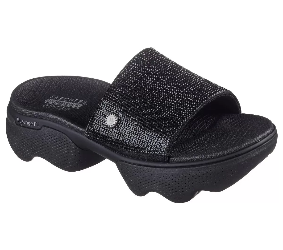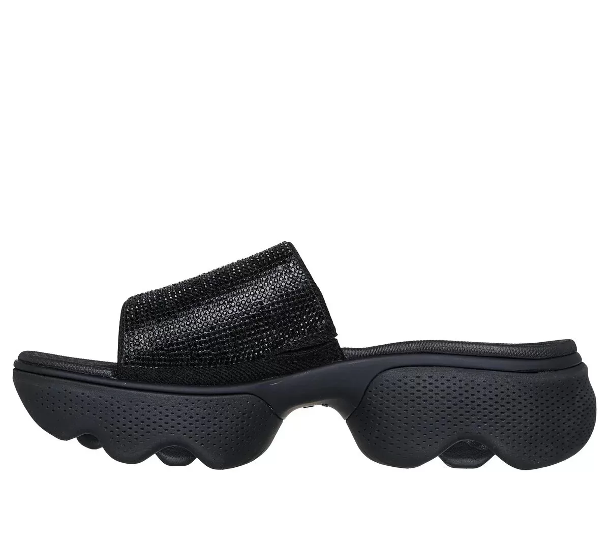 La célebre experta en estilo de vida, Martha Stewart, aporta su toque único a Skechers en esta vibrante colaboración. Brilla con una comodidad innovadora con Martha Stewart x Skechers: Massage Fit Edge – Radiance. Esta sandalia vegana tipo slide presenta una parte superior de una sola banda cruzada cubierta de diamantes de imitación, una plantilla contorneada Goga Mat® con Arch Comfort® para mayor soporte y nuestra exclusiva entresuela Massage Fit™ que masajea suavemente tus pies con cada paso.