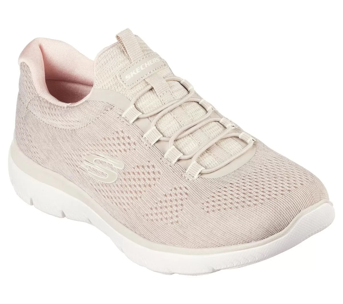 Estilo deportivo y comodidad flexible se combinan en las Skechers Summits – Fun Flair. Presentan una parte superior de malla de ingeniería jaspeada con cordones elásticos y una plantilla acolchada Skechers Memory Foam™. Características principales: Plantilla acolchada Skechers Memory Foam™, cómoda y transpirable. Fabricadas con materiales 100 % veganos. Entresuela con amortiguación. Suela exterior con tracción flexible. Lavables a máquina. Tacón de 3,18 cm. Detalle del logotipo de Skechers®.