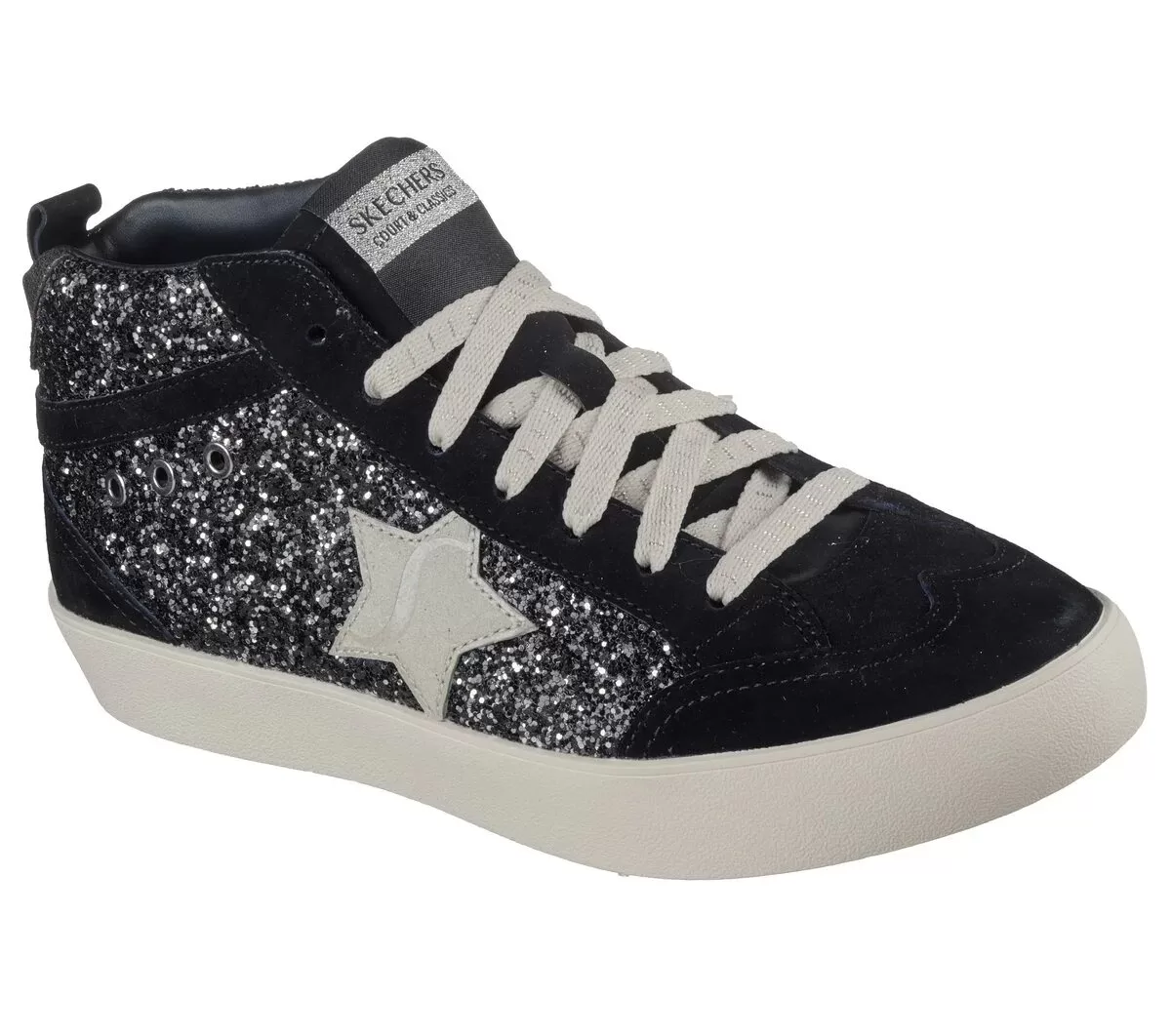 Encuentra tu estilo estrella con comodidad inigualable al usar Skechers Strand Star – Golden Glam. Esta zapatilla deportiva de media caña presenta una parte superior con capa de gamuza y brillo de roca con una entresuela estilo cancha con cuña oculta, cordones en la parte delantera, detalle de parche de estrella en el cuarto y una plantilla acolchada Skechers Air-Cooled Memory Foam®.
