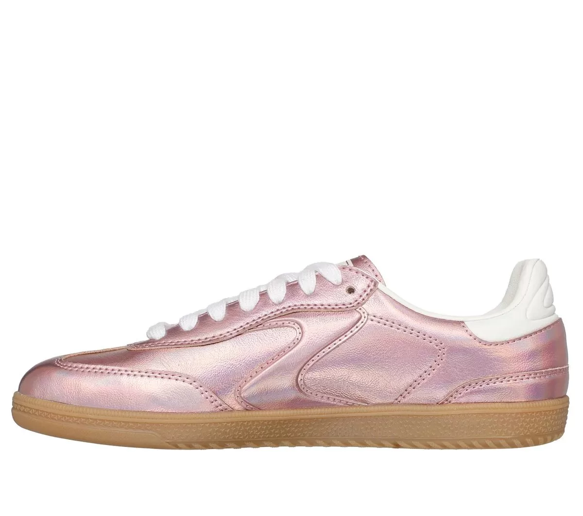 ES LA S® Un clásico moderno se une a la comodidad con las Skechers Hotshot – True Iridescence. Estas zapatillas con cordones para cancha presentan una parte superior sintética metálica con acabado iridiscente, el logotipo de la “S” en el lateral y una plantilla acolchada Skechers Air-Cooled Memory Foam®.