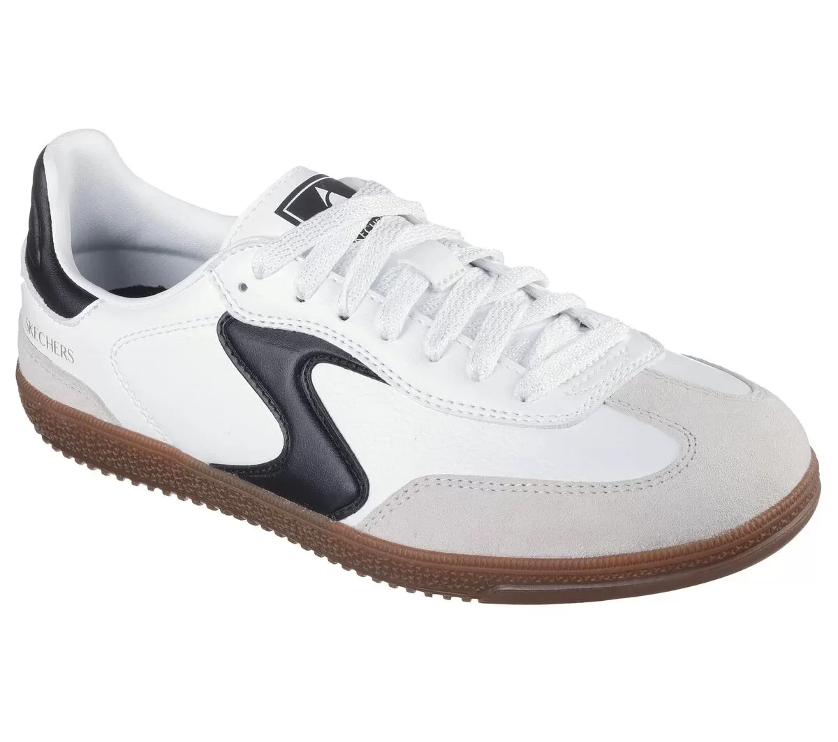 Un clásico moderno se combina con la comodidad de la nueva generación en Skechers Hotshot – Kickoff. Esta zapatilla deportiva con cordones, estilo cancha, presenta una parte superior de duraleather con superposiciones de ante porcino, logotipo de la “S” en el lateral en contraste y una plantilla acolchada Skechers Air-Cooled Memory Foam®.