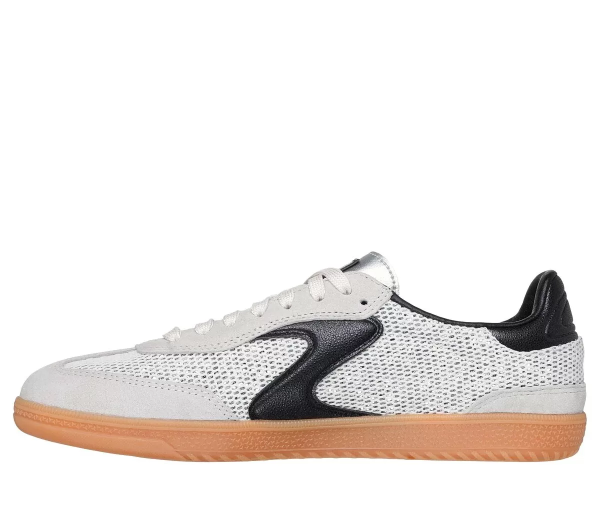 - Parte superior de malla con refuerzo de brillo y revestimientos de cuero