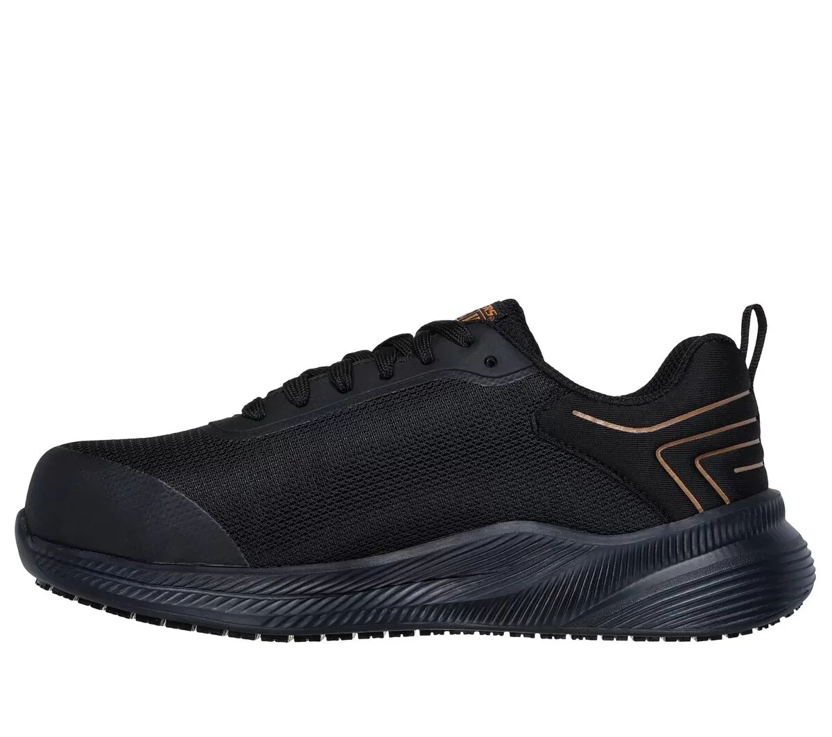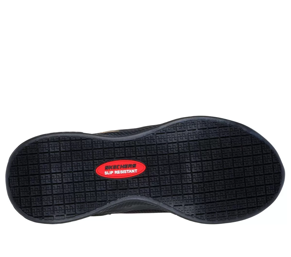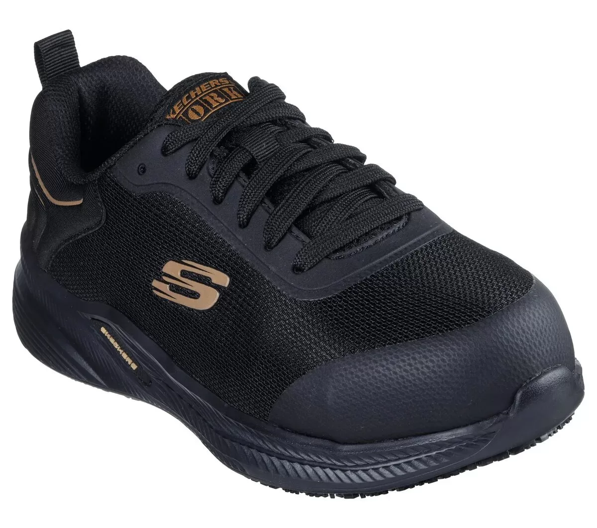 La comodidad y la seguridad se combinan en Skechers Work™ Carbix – Nia. Este diseño deportivo antideslizante presenta una parte superior de tejido sintético con cordones, una plantilla acolchada Skechers Air-Cooled Memory Foam® y una puntera de seguridad de nanocarbono.