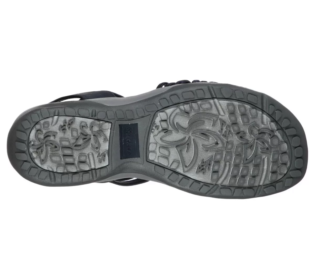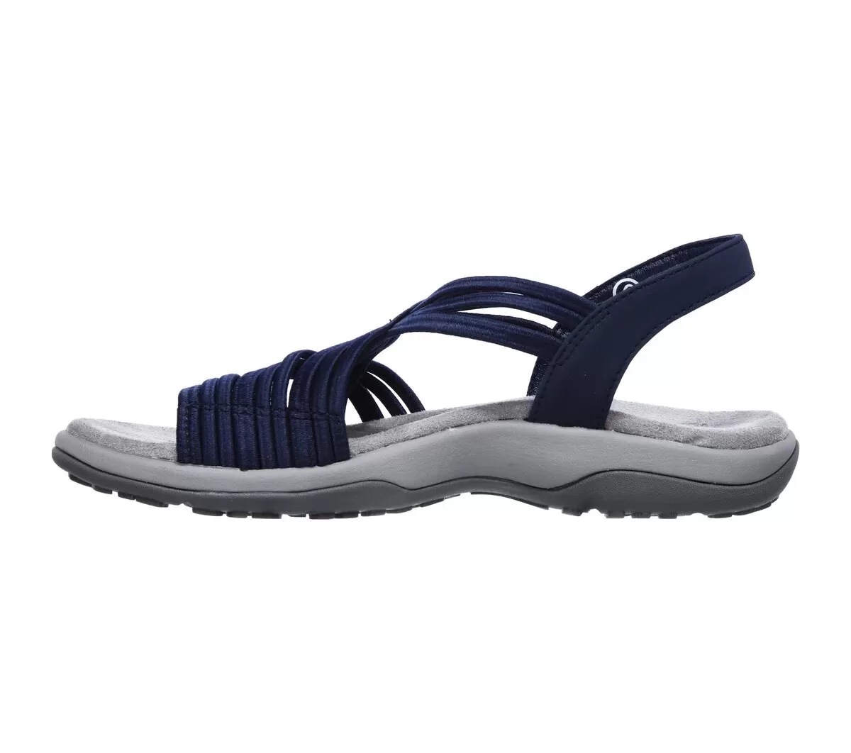 Estírate y disfruta de los días soleados con comodidad con las Skechers Reggae Slim – Simply Stretch. Estas sandalias deportivas informales con tiras y talón abierto presentan una parte superior de tela elástica y material sintético, además de una plantilla acolchada de espuma viscoelástica.