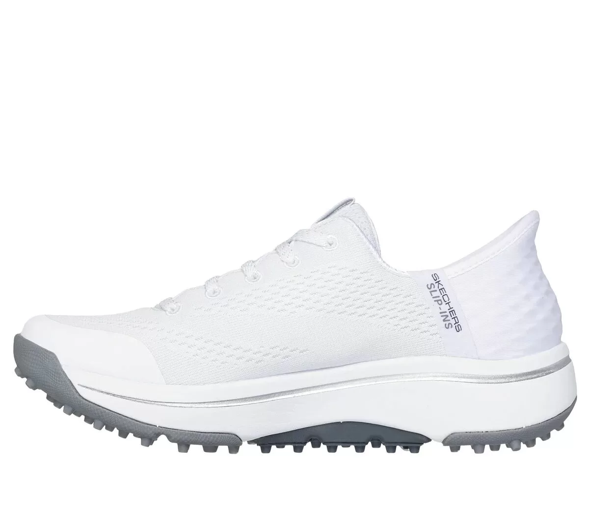 Domine el campo con lo mejor en tecnologías de comodidad usando Skechers Hands Free Slip-ins®: GO GOLF® Arch Fit® – Slip-ins. Diseñado con nuestra exclusiva Heel Pillow™, este calzado de golf sin tacos presenta una malla de ingeniería repelente al agua y una parte superior sintética con cordones ajustables, una plantilla Arch Fit® extraíble y una suela exterior Goodyear® Performance.