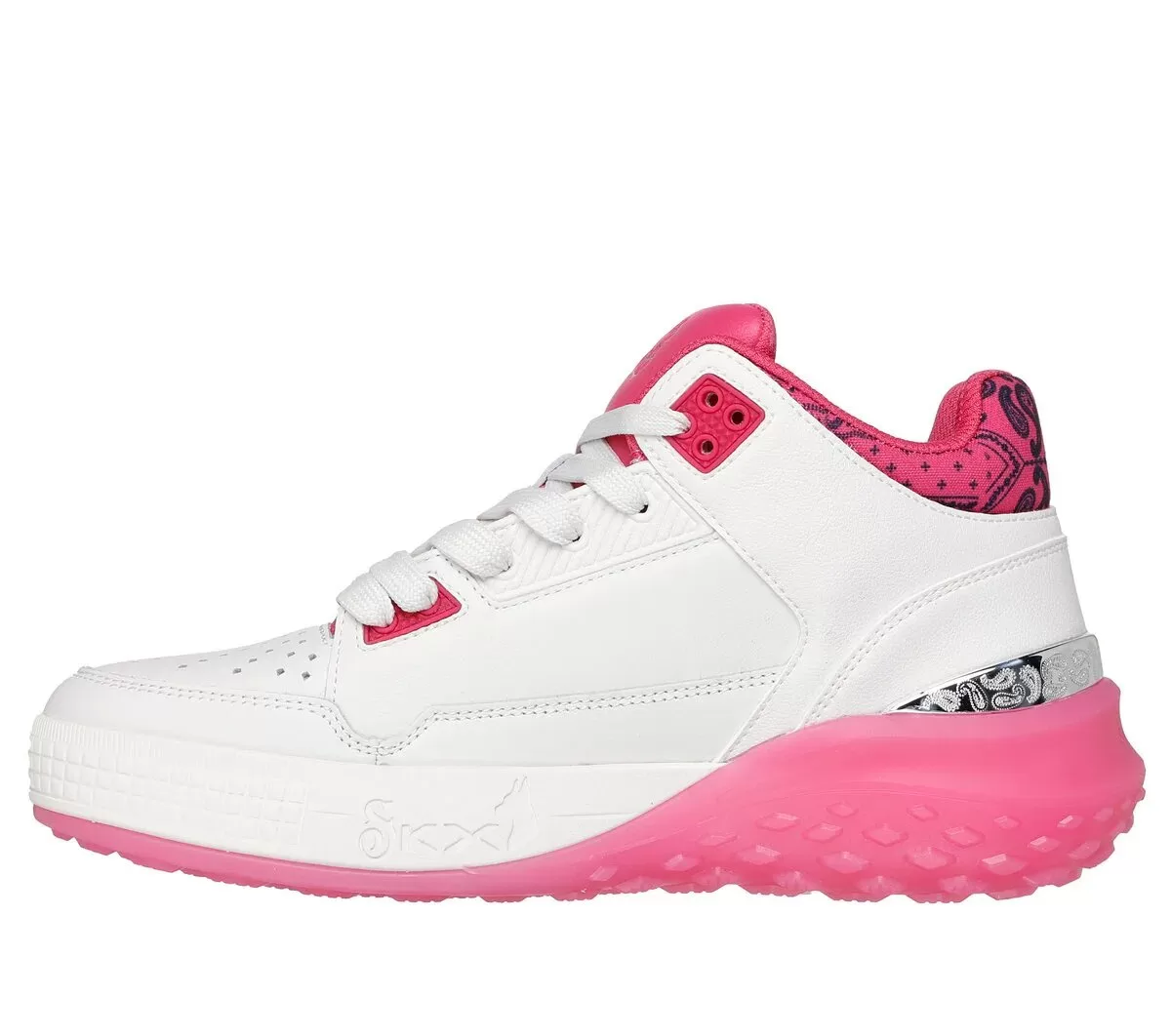 Con un toque de estilo: Skechers x Snoop Dogg: Sizzle – Buckets OG. Este estilo moderno y elegante de corte medio es tan único como el mismísimo D-O-Double G. Con una parte superior de cuero premium suave y perforado con detalle de cuello con estampado paisley, ribete metálico en el talón y una plantilla Skechers Air-Cooled Memory Foam® súper cómoda.