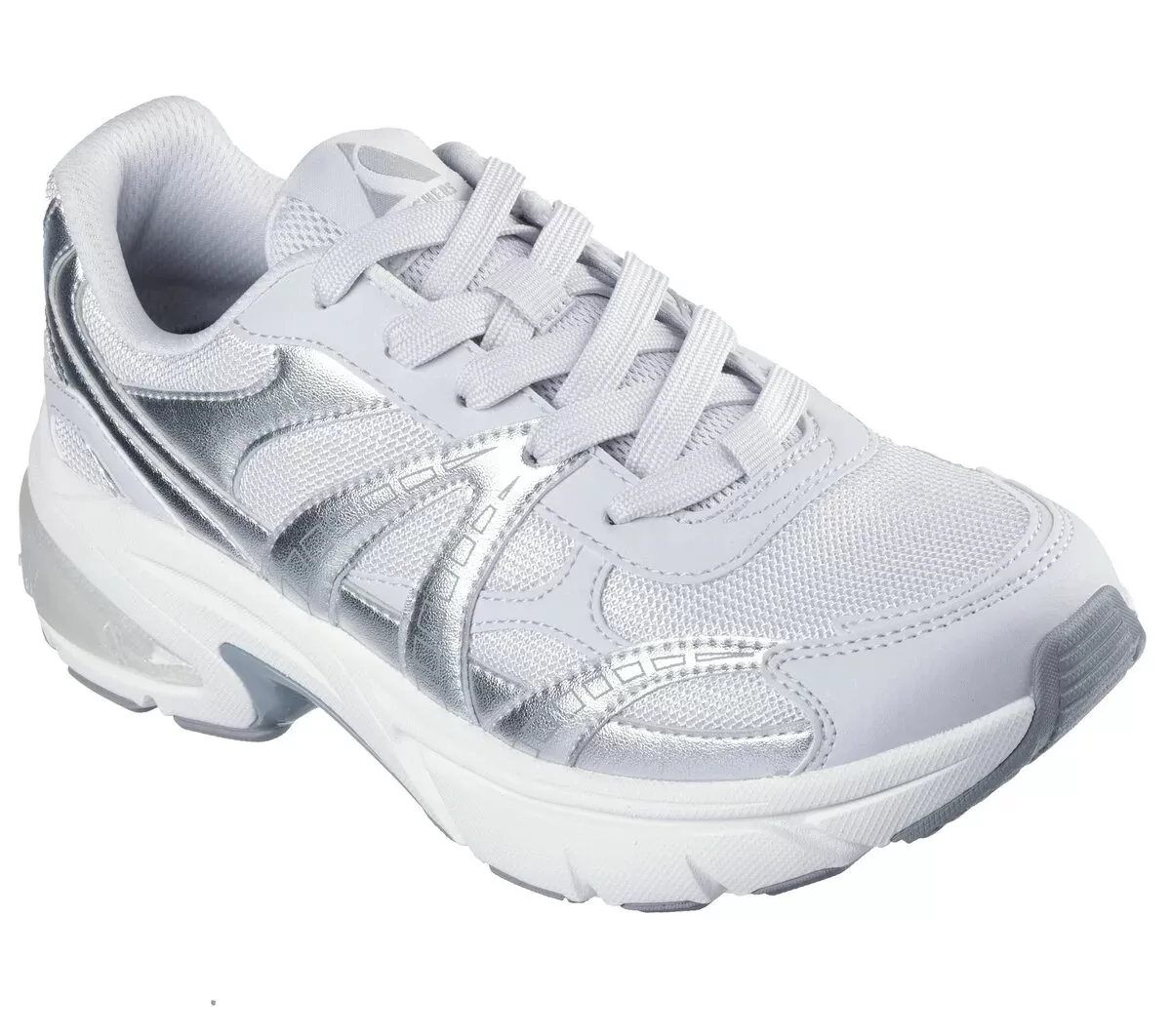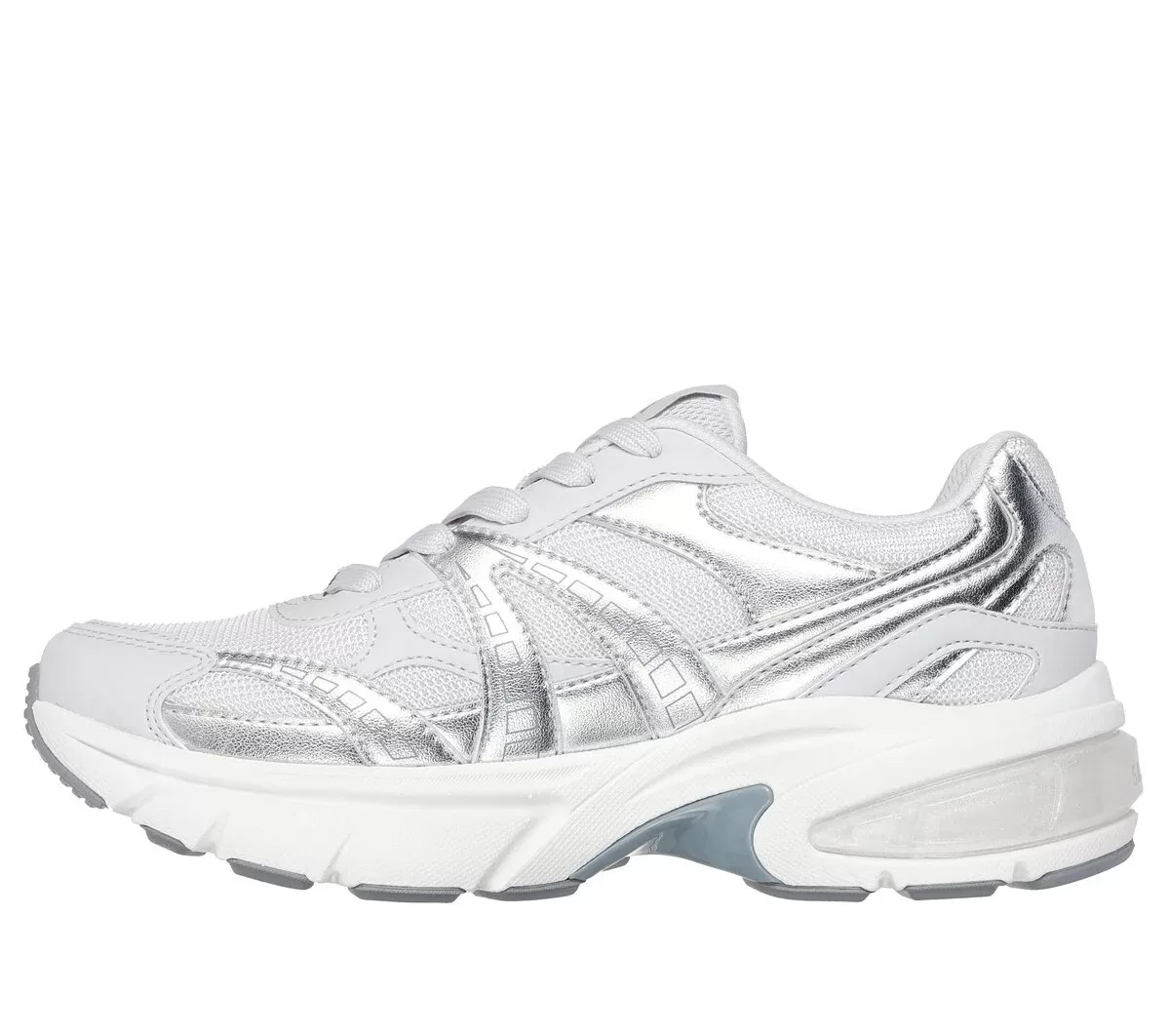 Muestra tu estilo deportivo de diva con las Skechers Street™ Skechers Shadow – Stellar 90. Estas zapatillas de moda con cordones cuentan con una parte superior de durapiel metálica y malla con una plantilla translúcida de entresuela y una plantilla acolchada Skechers Air-Cooled Memory Foam®.