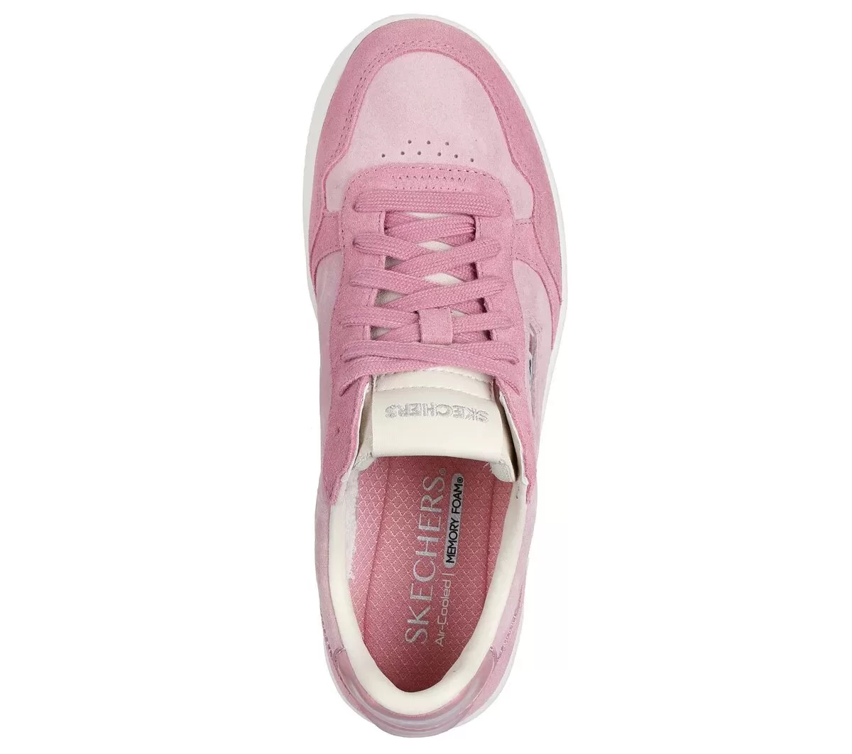 Estilo moderno e informal, y comodidad se combinan en las Skechers Sport Court 2.0 – Smooth Sparkle. Presentan una elegante silueta de cancha, parte superior de ante con cordones y ribete metálico, y una plantilla acolchada Skechers Air-Cooled Memory Foam®.