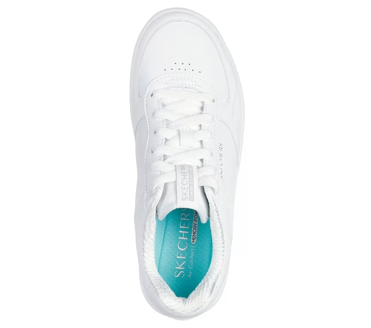 Estilo moderno e informal, y comodidad se combinan en las Skechers Sport Court 2.0 – Core Essential. Presentan una elegante silueta para la cancha, parte superior de duraleather con cordones y plantilla acolchada Skechers Air-Cooled Memory Foam®.