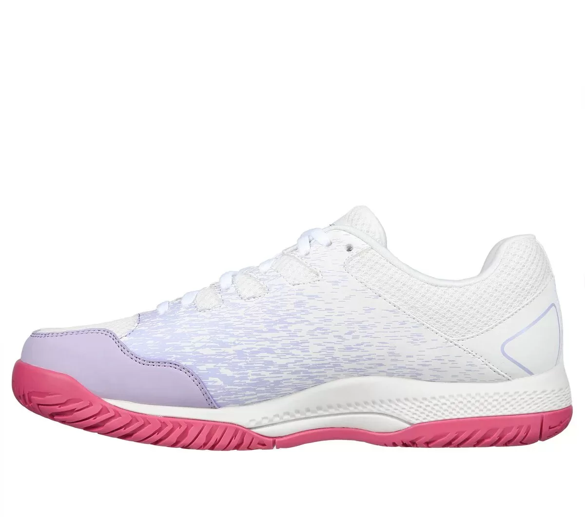 Realice sus movimientos con confianza y comodidad con soporte con Skechers Relaxed Fit®: Viper Court – Pickleball. Este calzado deportivo con cordones para cancha presenta una parte superior de malla y material sintético estampado con una plantilla Arch Fit® extraíble, amortiguación ligera ULTRA FLIGHT® y una suela exterior Goodyear® Performance.