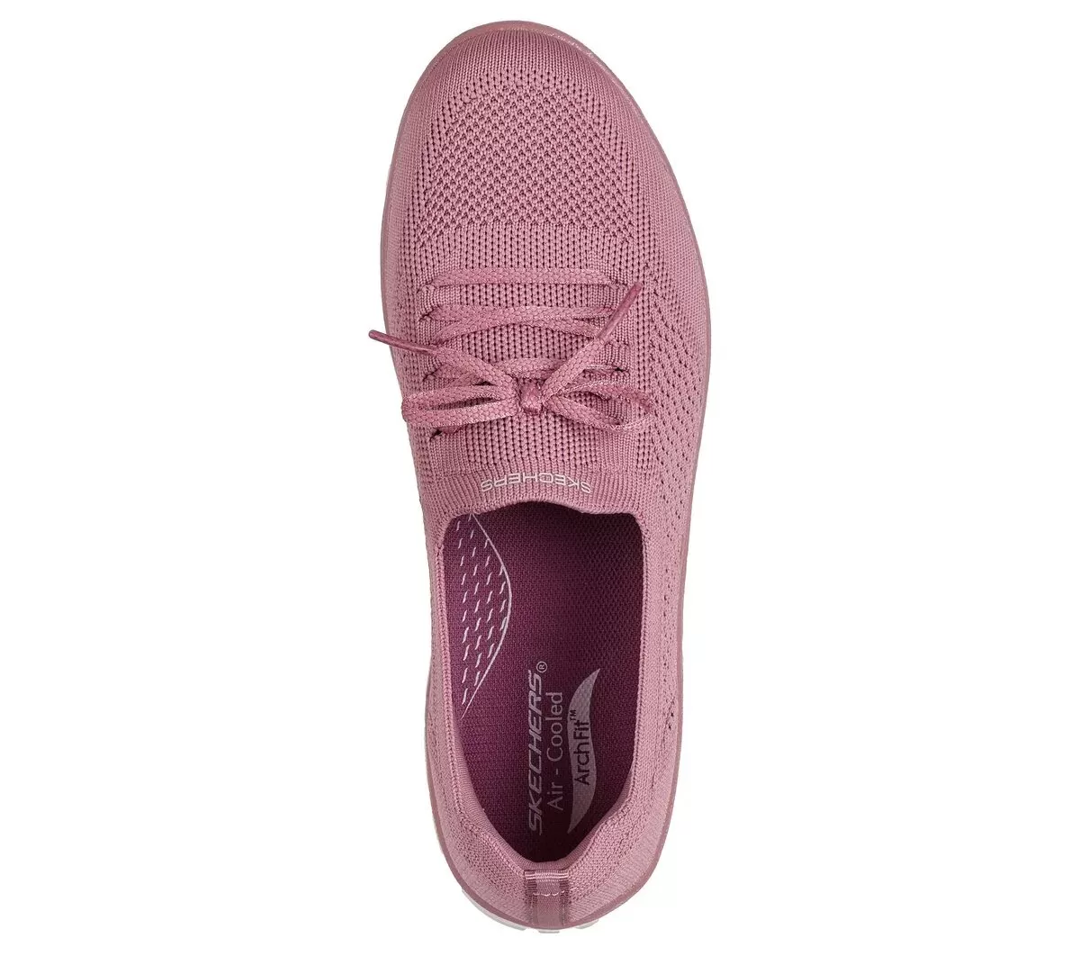 Marcha al ritmo de tu propio tambor con la comodidad transpirable que ofrece Skechers Arch Fit® Inspire – Olivia. Este diseño vegano de skimmer presenta una parte superior de punto técnico Stretch Fit® con cordones fijos, amortiguación ligera ULTRA GO® y una plantilla extraíble Arch Fit®.