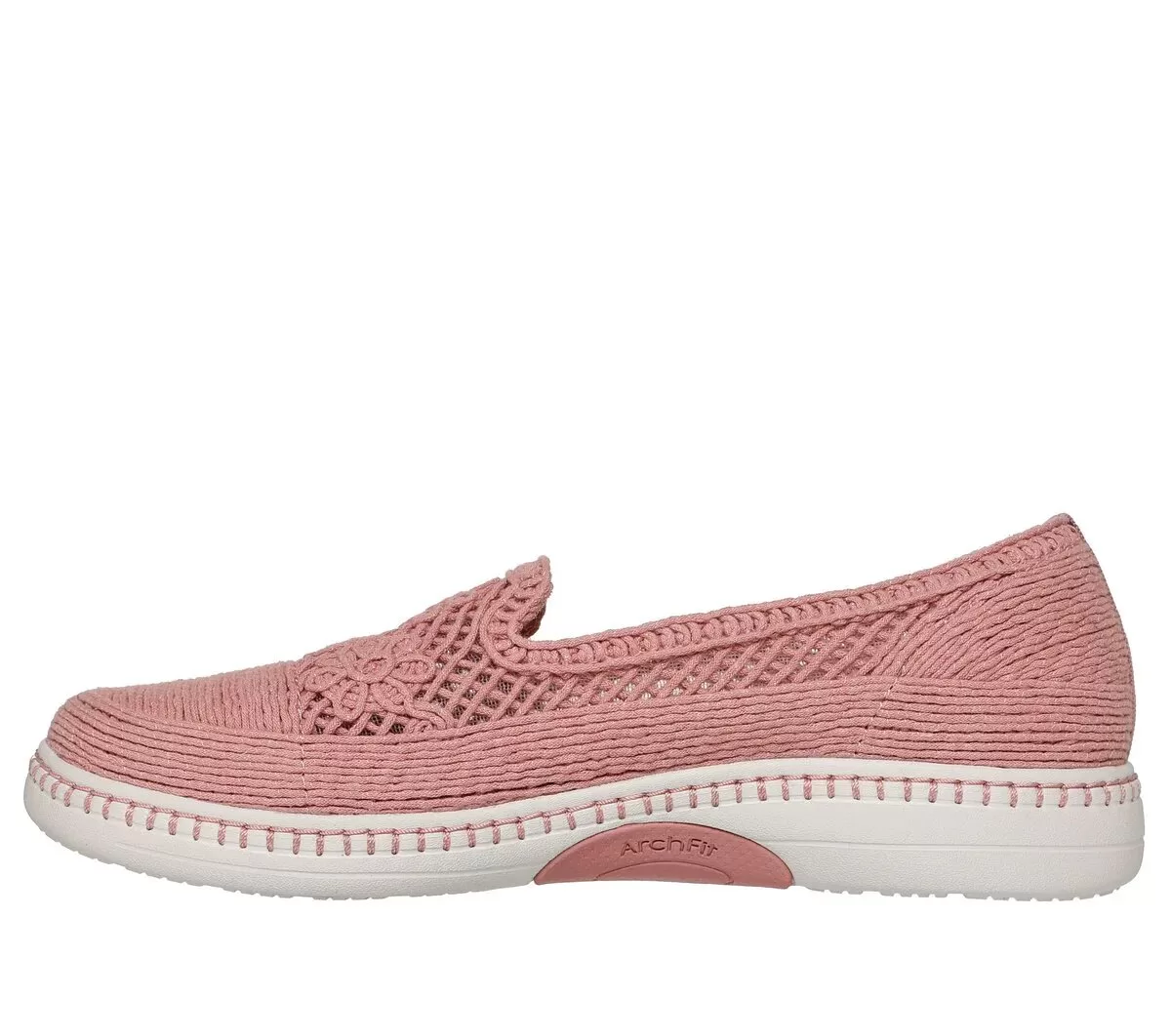 Disfrute de caminatas con comodidad duradera con Skechers Arch Fit Inspire – Venice. Este diseño vegano de skimmer ha recibido el Sello de Aceptación de la APMA y presenta una parte superior de punto de crochet con Breathable Comfort®, amortiguación ligera ULTRA GO® y una plantilla extraíble Arch Fit®.
