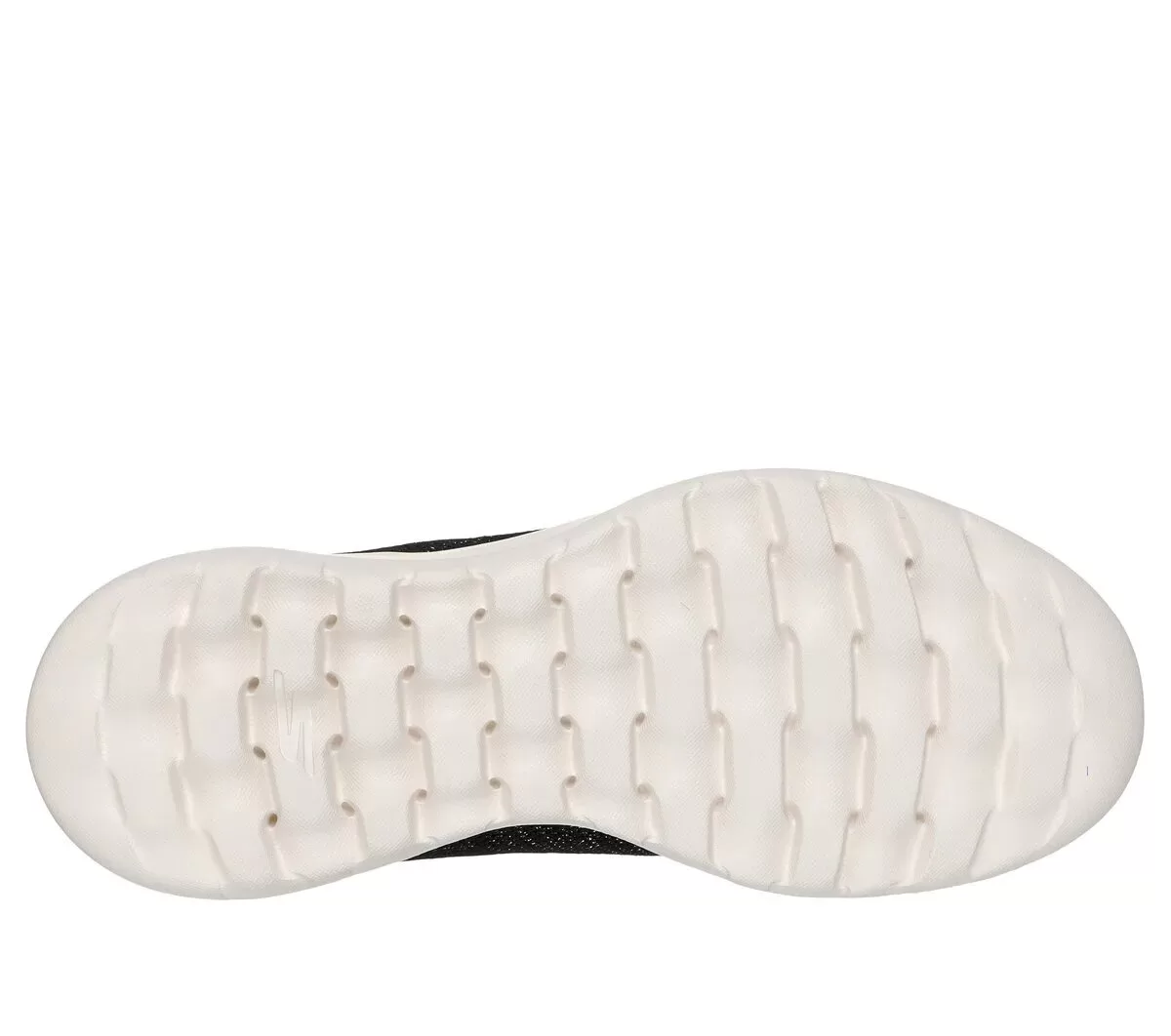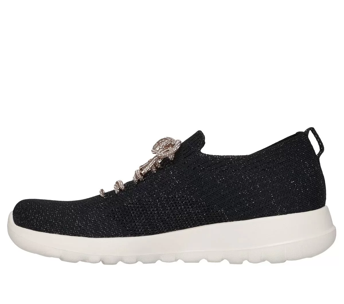 Mejora tu rutina con la comodidad relajada que ofrece Skechers GO WALK Joy™ – Kristal. Este estilo vegano para caminar fácil de poner presenta una parte superior de punto elástico con cordones decorativos adornados con diamantes de imitación, una plantilla acolchada Skechers Air-Cooled Goga Mat® y amortiguación ligera 5-GEN®.