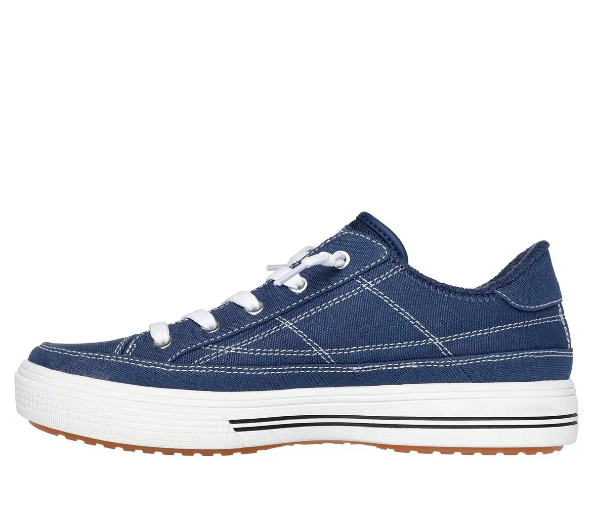 Camine con comodidad y soporte con un clásico elegante con Skechers Street™ Arch Fit® Arcade – Arcata. Este diseño fácil de usar presenta una parte superior de lona con cordones decorativos, plantilla Arch Fit® extraíble y una entresuela acolchada ligera.