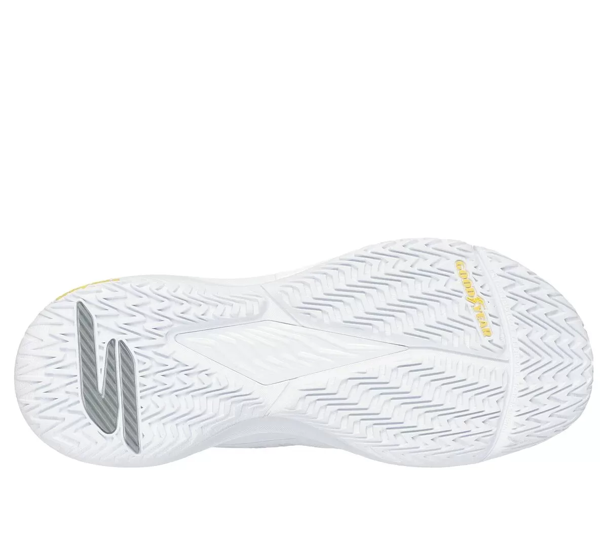 Experimenta ligereza, velocidad y durabilidad en la cancha con los Skechers Hands Free Slip-ins®: Tennis Baseline Bully. Diseñados con nuestra exclusiva Heel Pillow™, estos innovadores zapatos de tenis sin cordones cuentan con una parte superior de malla transpirable y una capa sintética, además de una puntera reforzada para mayor durabilidad durante saques y voleas por encima de la cabeza, además de una envoltura lateral para paradas repentinas. Una plantilla Move Foam®, una entresuela ULTRA GO® y una suela exterior de compuesto Goodyear® Gold completan el diseño, esta última diseñada para una mayor resistencia al desgaste, lo que permite al jugador realizar deslizamientos controlados en la superficie de la cancha.