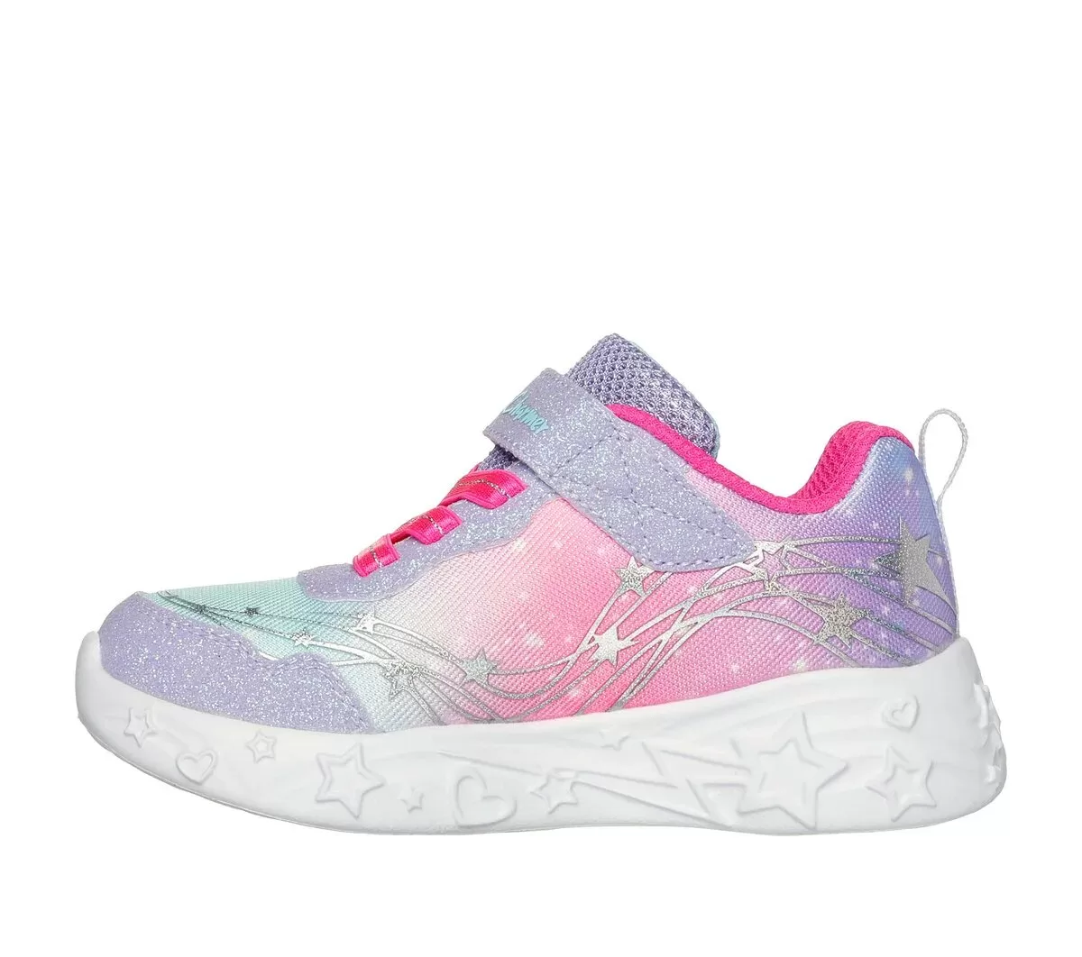 Alegra sus pasos con la magia de los unicornios con las Skechers Unicorn Charmer – Lil Stellar. Este diseño iluminado presenta una parte superior de malla con brillo degradado y estampado de estrellas metalizadas, una entresuela de unicornio esculpida e iluminada y una plantilla acolchada y cómoda.