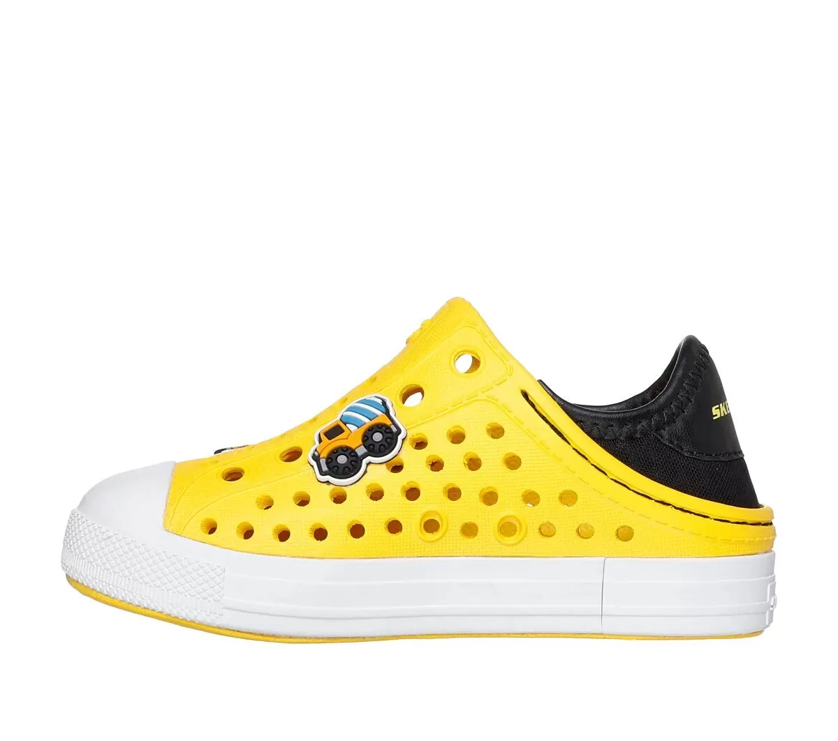 Un favorito para el verano ahora es más fresco con Skechers Foamies®: Guzman Steps – Hydro-Squad Buddies. Este estilo esculpido está hecho de Foamies® EVA y presenta una parte superior perforada con adornos temáticos en el empeine, una plantilla acolchada y un talón plegable de neopreno suave para poner y quitar fácilmente.