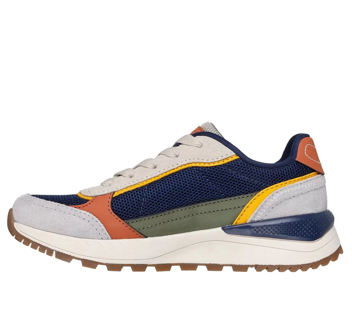 Pies cómodos y estilo deportivo hacen un gran par con Skechers Fury – Modern Ave. Este jogger con cordones y bloques de color presenta una parte superior con una capa superpuesta de malla, sintético y gamuza con una plantilla acolchada Skechers Air-Cooled Memory Foam®.