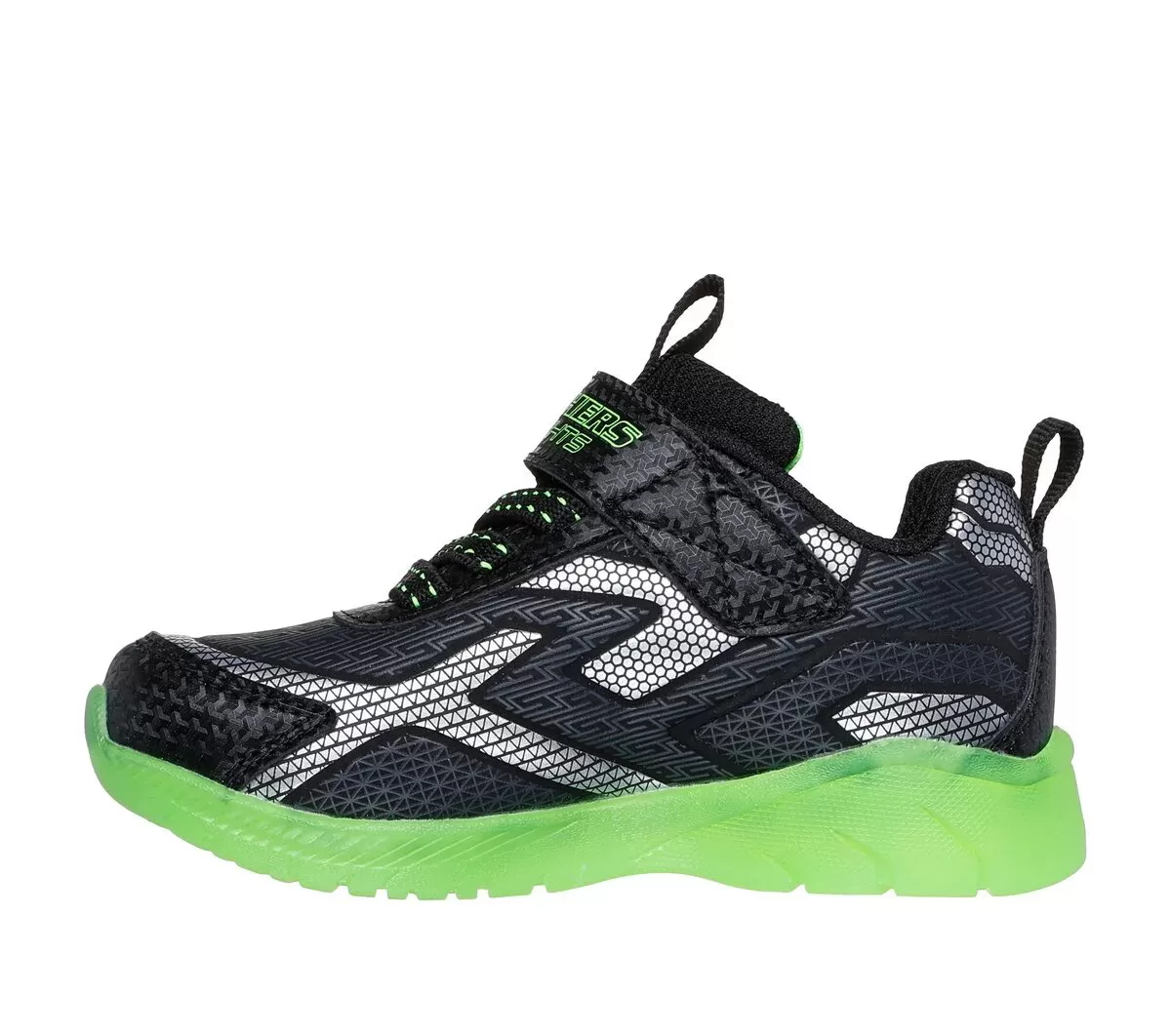 Camina con la diversión de las luces con las Skechers S-Lights®: Illumi-Brights – Grid Flash. Estas zapatillas iluminadas cuentan con una parte superior sintética con cordones elásticos, cierre adaptable Skechers y una plantilla acolchada y cómoda.