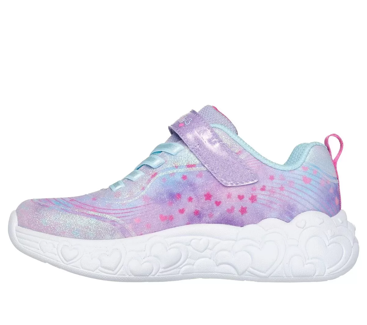 El estilo deportivo se ilumina y se vuelve adorable con Skechers S-Lights®: Eternal Heart Lights. Este diseño iluminado presenta una parte superior de malla brillante y brillo sintético con un frente con cordones elásticos y un cierre adaptable de Skechers.