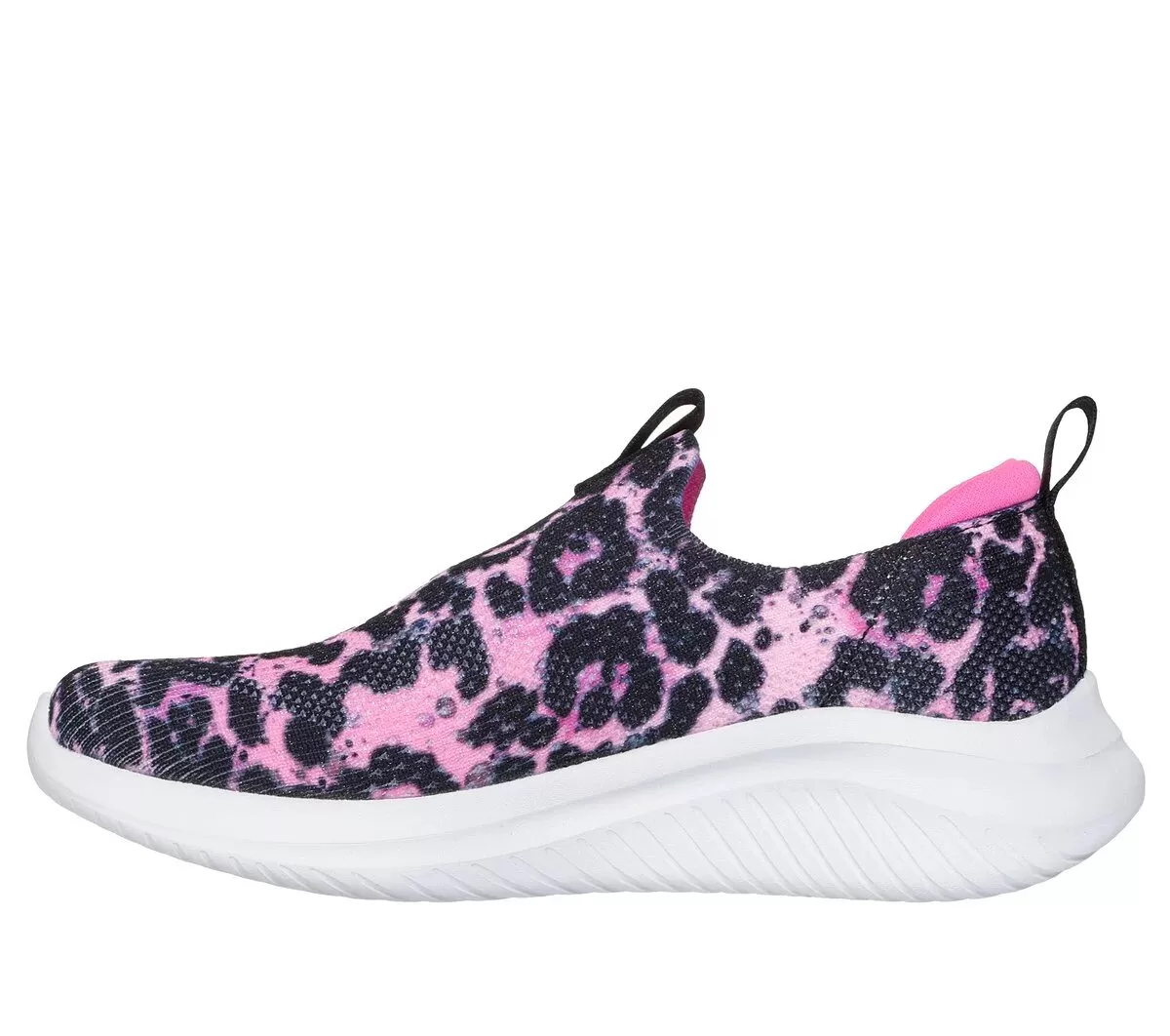 Manténgase cómodo desde los días de escuela hasta la diversión del fin de semana en el patio de recreo con el cómodo Skechers Ultra Flex 3.0 – Cheetah Girlie. Esta zapatilla deportiva sin cordones Skechers con ajuste adaptable presenta una parte superior de punto Stretch Fit® con un estampado integral de guepardo y una plantilla acolchada Skechers Air-Cooled Memory Foam®.
