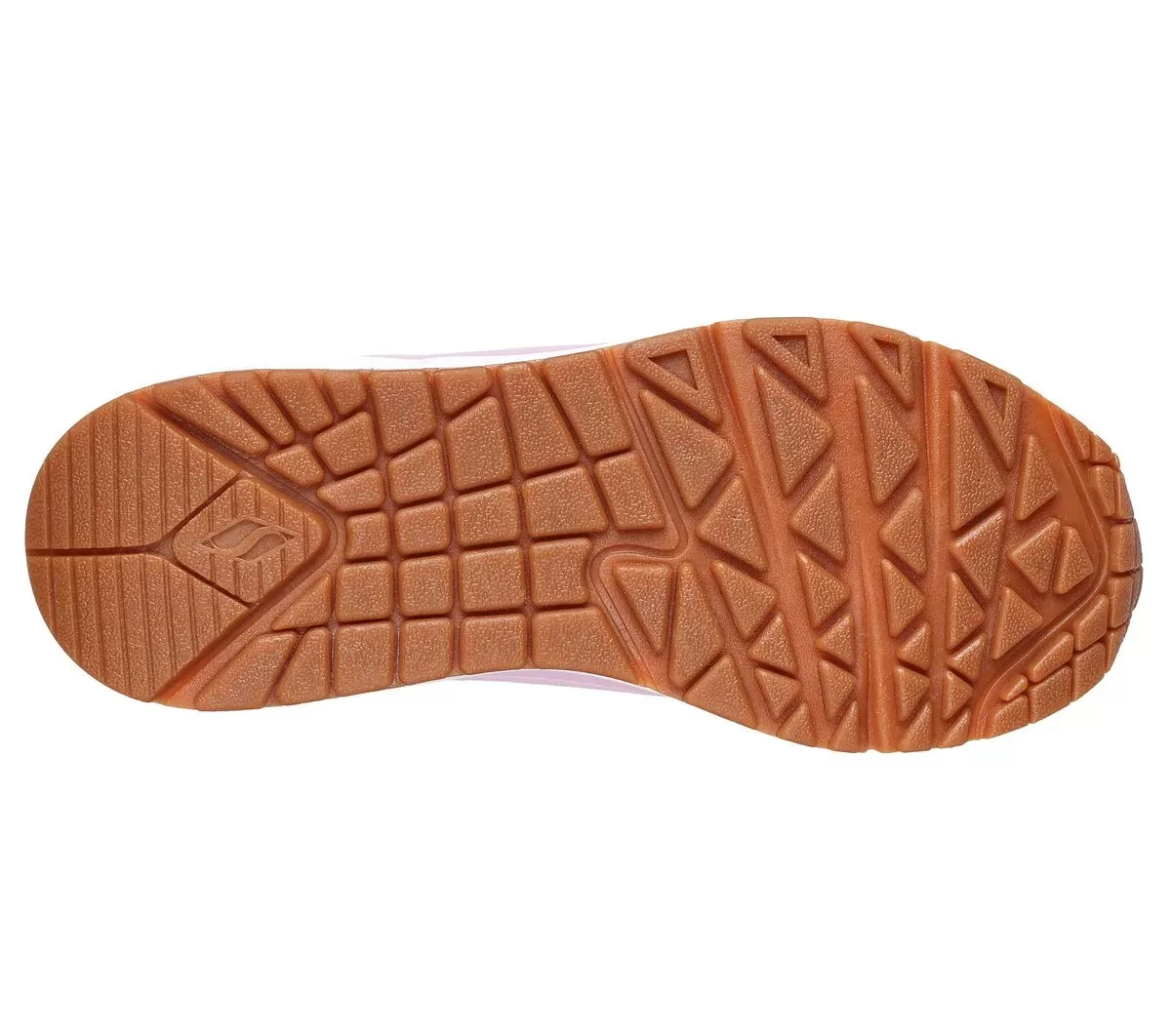 Mejora tu estilo deportivo con la comodidad y amortiguación de las Skechers Street™ Uno Gen1 – Shimmer Away. Estas zapatillas de moda con cordones presentan una parte superior de durapiel sintética con ribete metálico, una plantilla Skechers Air-Cooled Memory Foam® y una entresuela visible con airbag Skech-Air®.