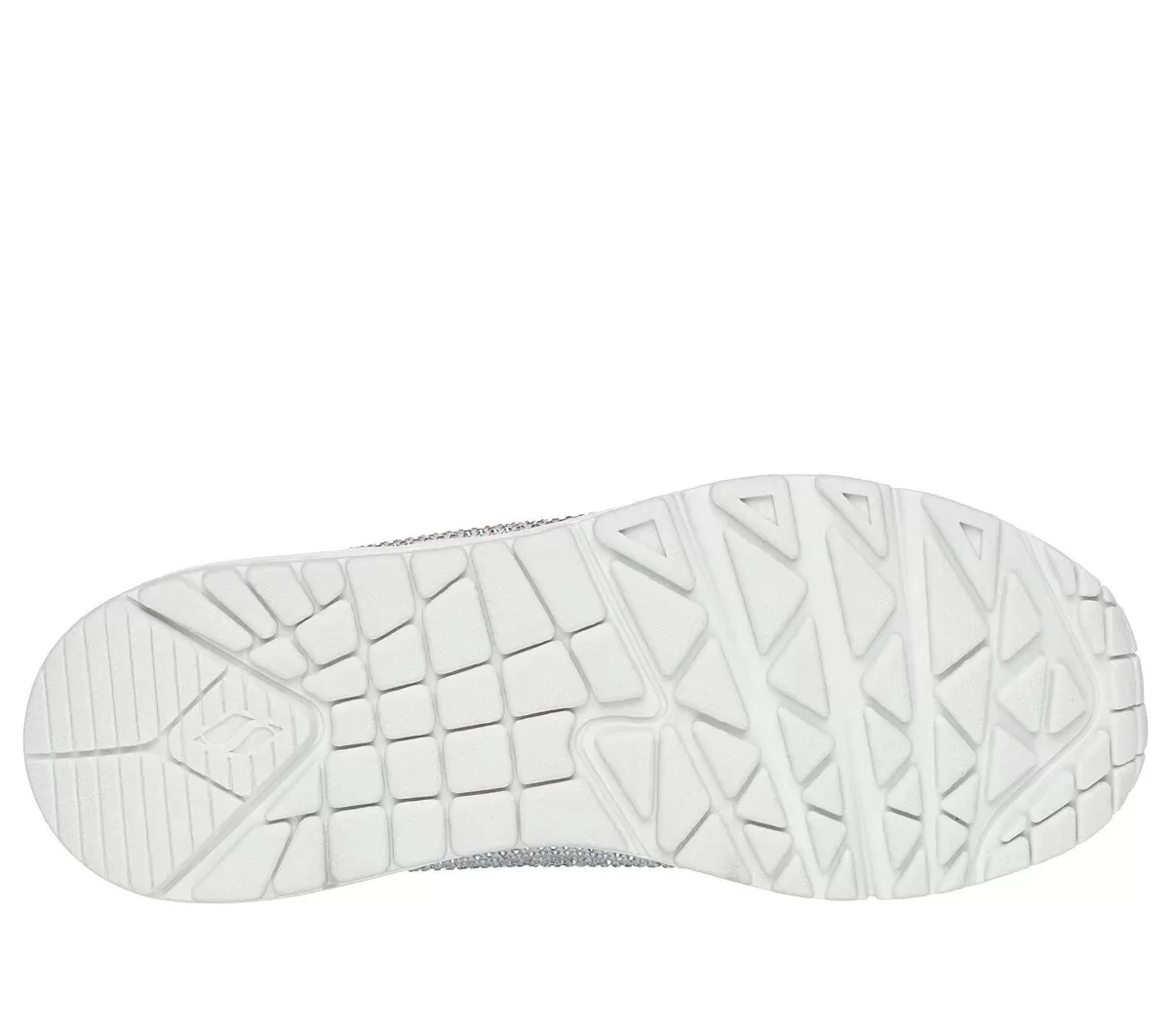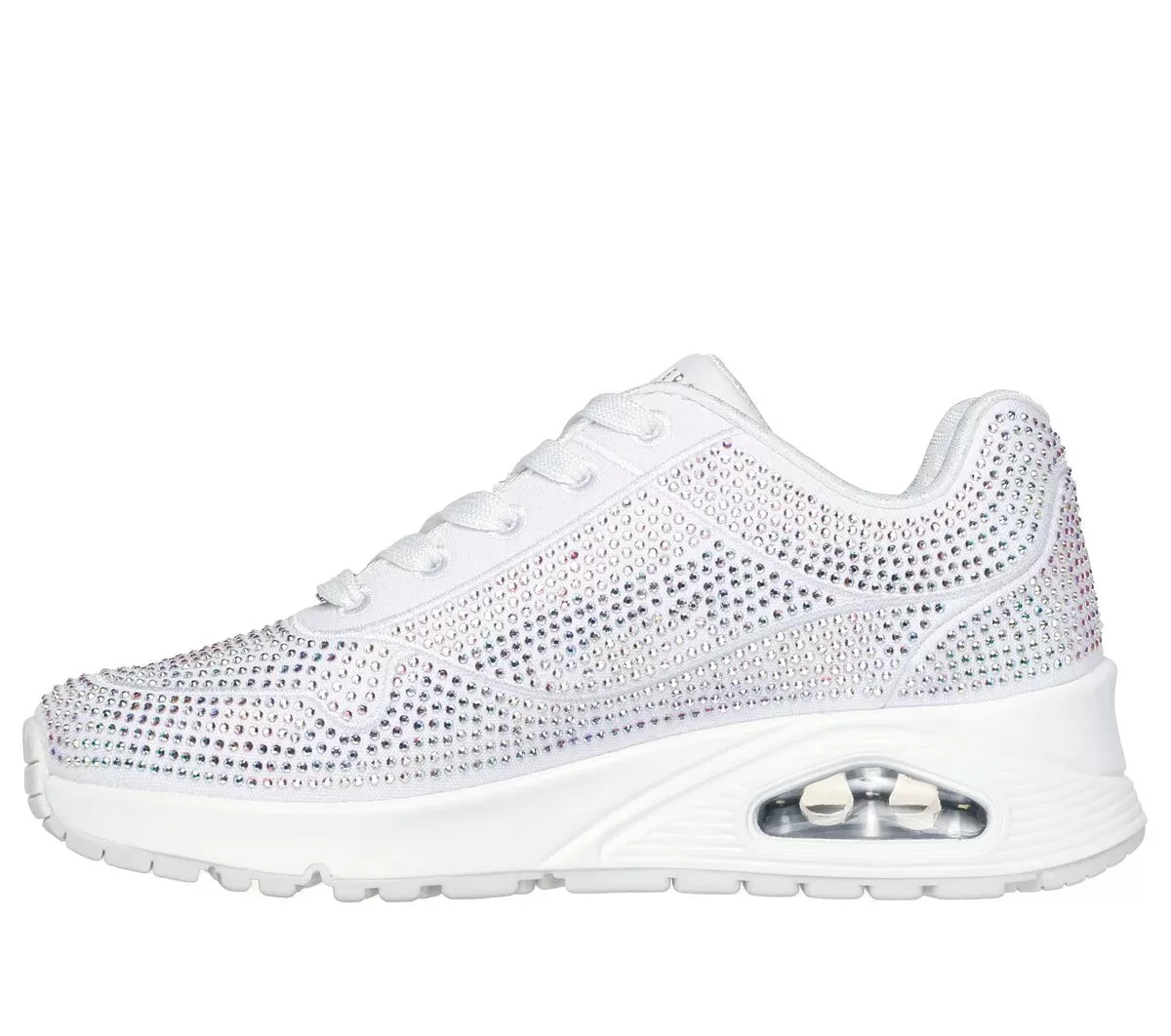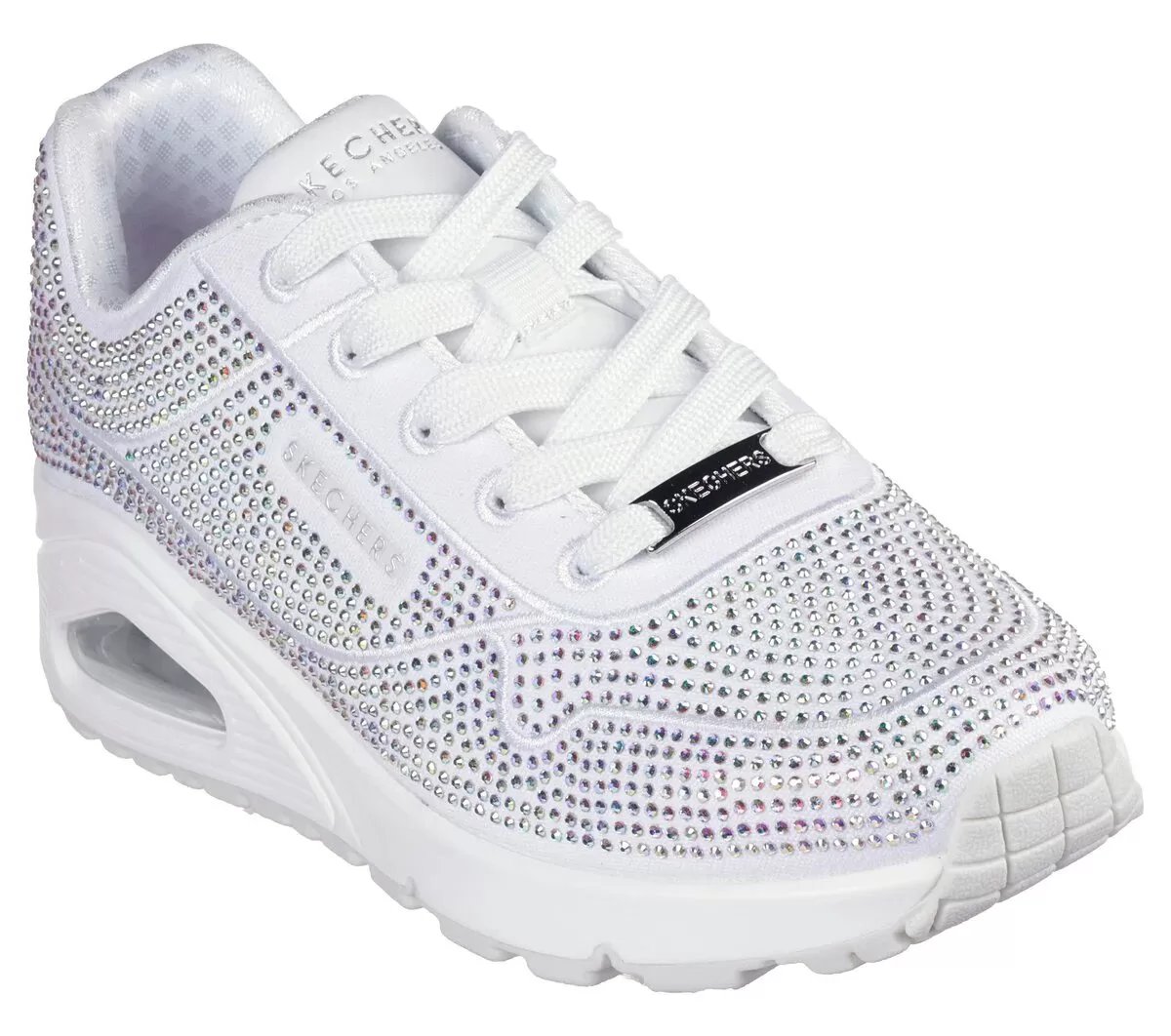 Deslumbra en el patio de recreo con las Skechers Street™ Uno Gen1 – Disco Rave. Estas zapatillas de moda con cordones presentan una parte superior de durabuck cubierta de diamantes de imitación, una plantilla cómoda Skechers Air-Cooled Memory Foam® y una entresuela con airbag visible Skech-Air®.