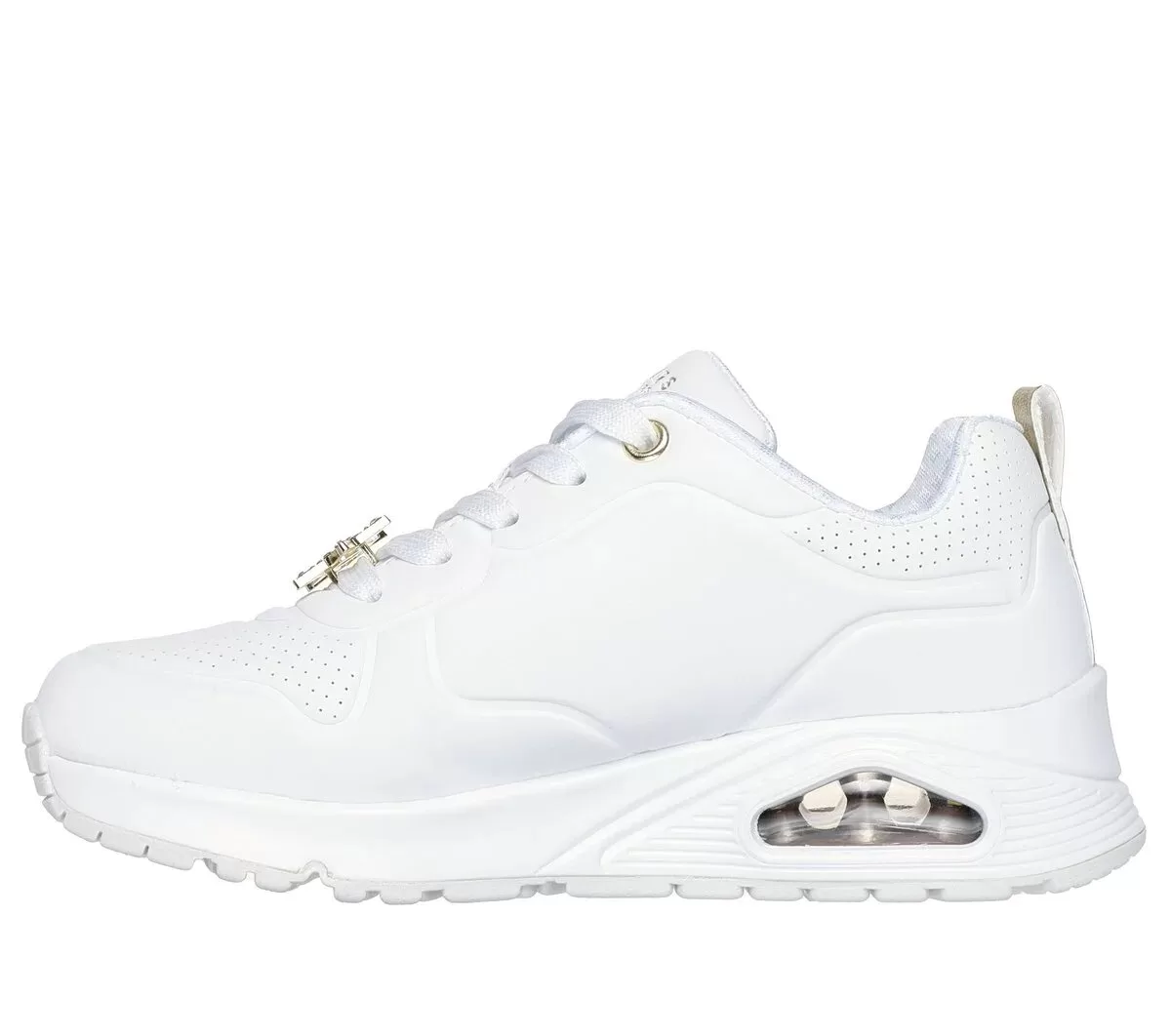 Mejora tu estilo deportivo con la comodidad y amortiguación de las Skechers Street™ Uno Gen1 – Trendy Jewels. Estas zapatillas de moda con cordones presentan una parte superior de durabuck en relieve con detalle de dije, plantilla Skechers Air-Cooled Memory Foam® y una entresuela visible con airbag Skech-Air®.
