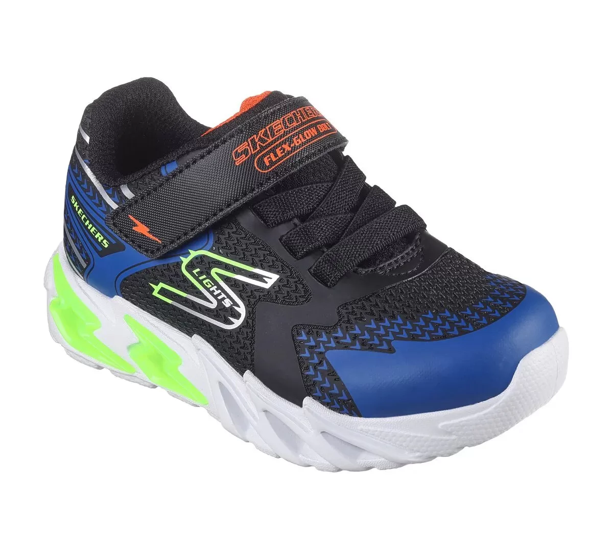 Equípate con estilo y comodidad con las Skechers S-Lights®: Flex-Glow Bolt. Este diseño iluminado presenta una parte superior de malla y material sintético con cordones elásticos, correa ajustable en el empeine y una plantilla acolchada y cómoda.