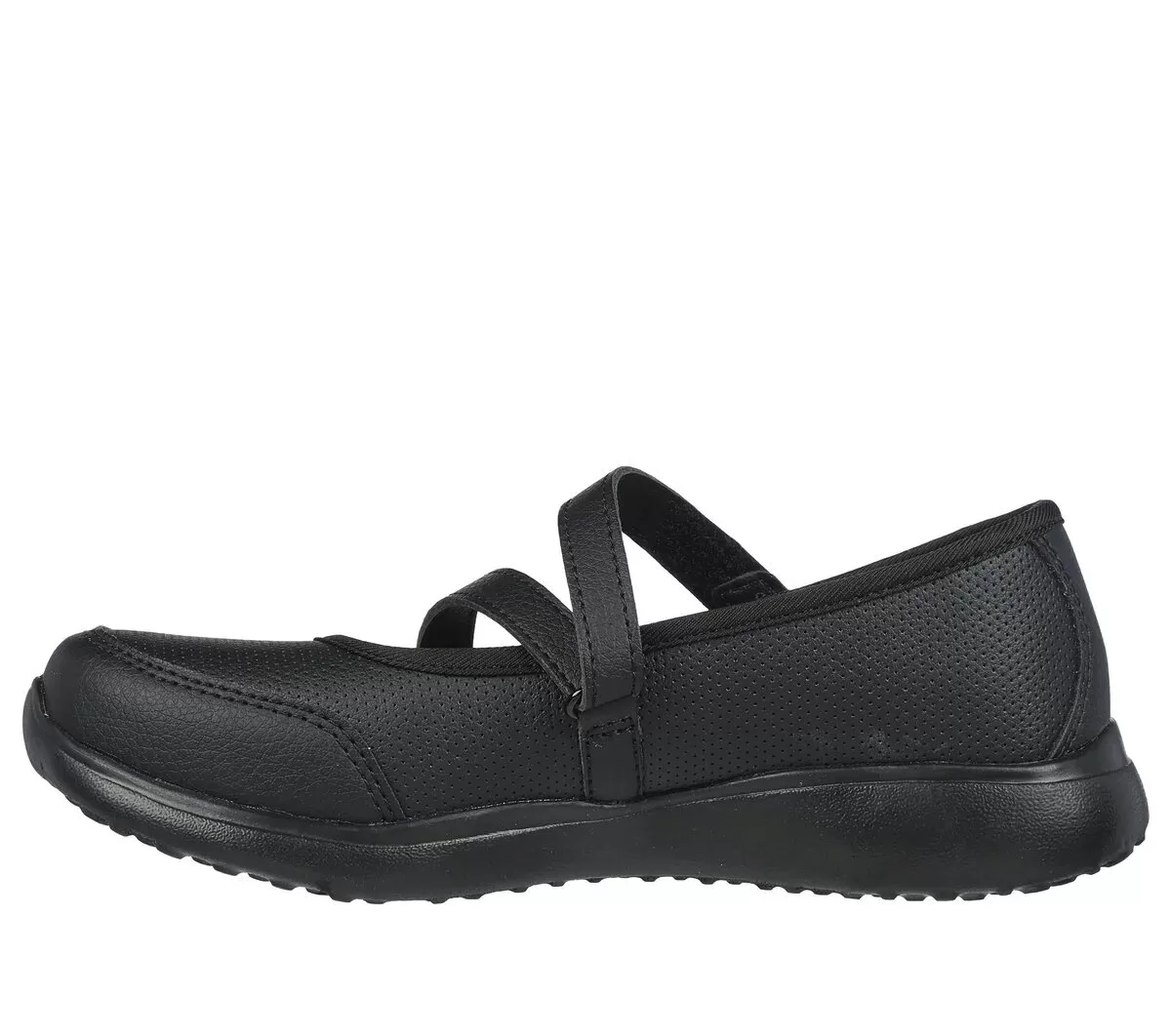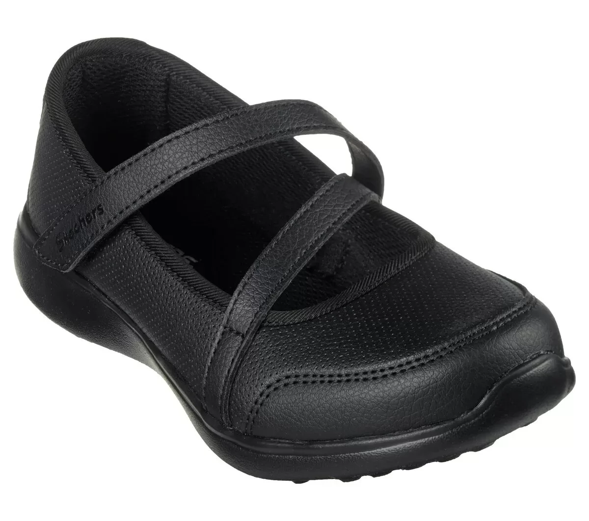 Renueva el look escolar de tus hijos con comodidad y estilo con las Skechers Microstrides – School Bus Kicks. Este estilo Mary Jane, que cumple con los requisitos del uniforme escolar, presenta una parte superior sintética ligera con dos tiras ajustables en el empeine y una plantilla acolchada y cómoda.